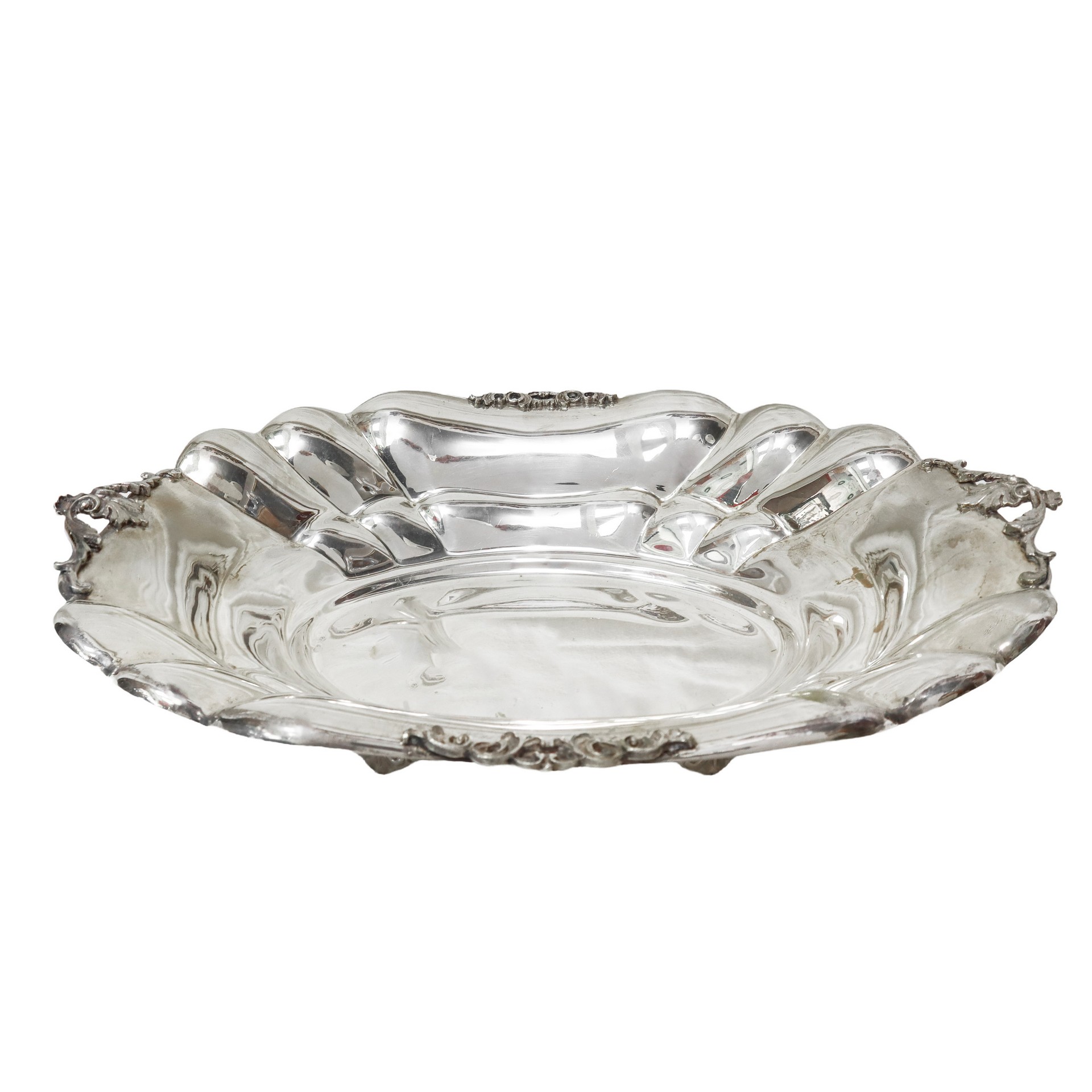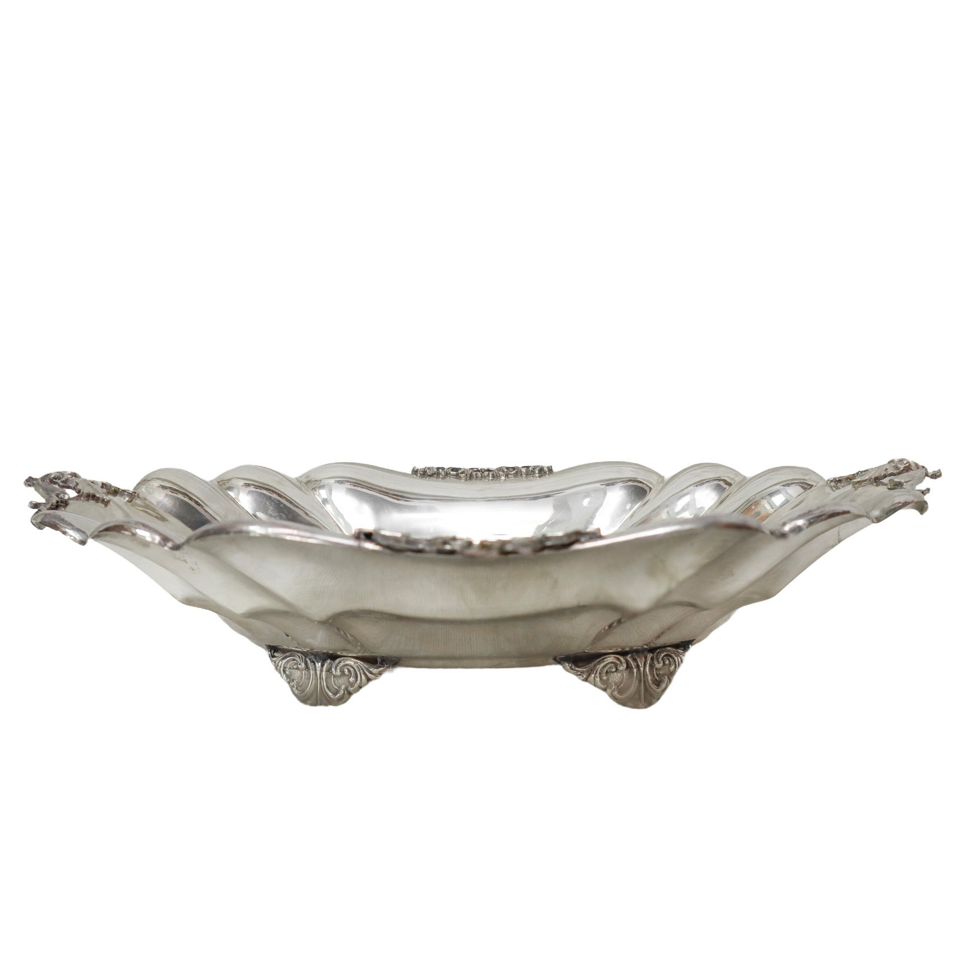 Vassoio portadolci in argento ovale, early 20° secolo g 294 / h cm 7 / d 30 x 22 Bordo ornato con ghirlande di foglie Bordo ornato con ghirlande di foglie