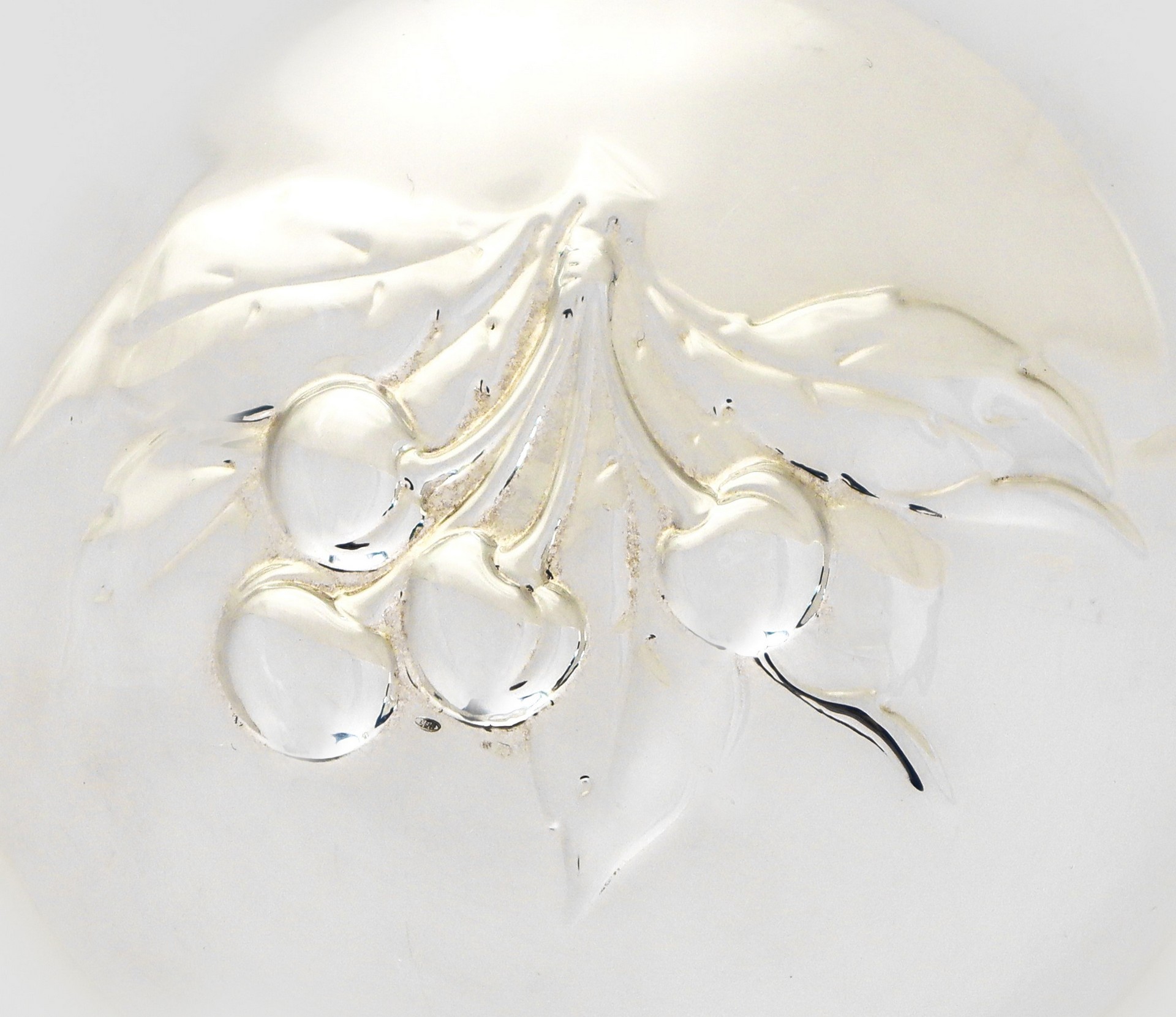 coppia di svuotatasche con decorazioni di uva e ciliegie Diametro 19,5, gr 144, Diametro 16,5gr 72