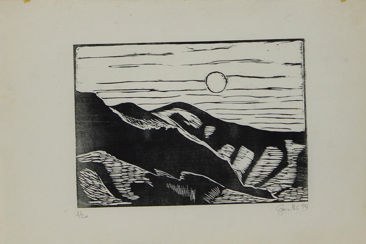 Marchello G. Il silenzio della luna xilografia su carta, cm. 21x34, es. 1/20 firmata e datata in basso a destra