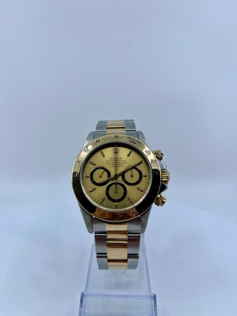 Marca Rolex Modello (Orologio) Daytona Numero di referenza 16523 Carica Automatico Materiale della cassa Oro/Acciaio Materiale cinturino Oro/acciaio anni 90 Corredo Con documenti originali, senza scatola originale Materiale della cassa Oro/Acciaio Diametro 40 mm Impermeabile 10 ATM Materiale lunetta Oro giallo Vetro Vetro zaffiro Quadrante Grigio Numeri sul quadrante Senza numeri Cinturino Materiale cinturino Oro/acciaio Colore cinturino Oro/acciaio Chiusura Déployante Materiale chiusura Oro/Acciaio Funzioni Cronografo