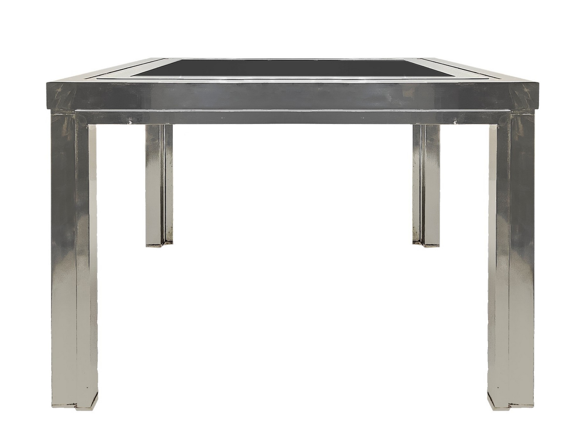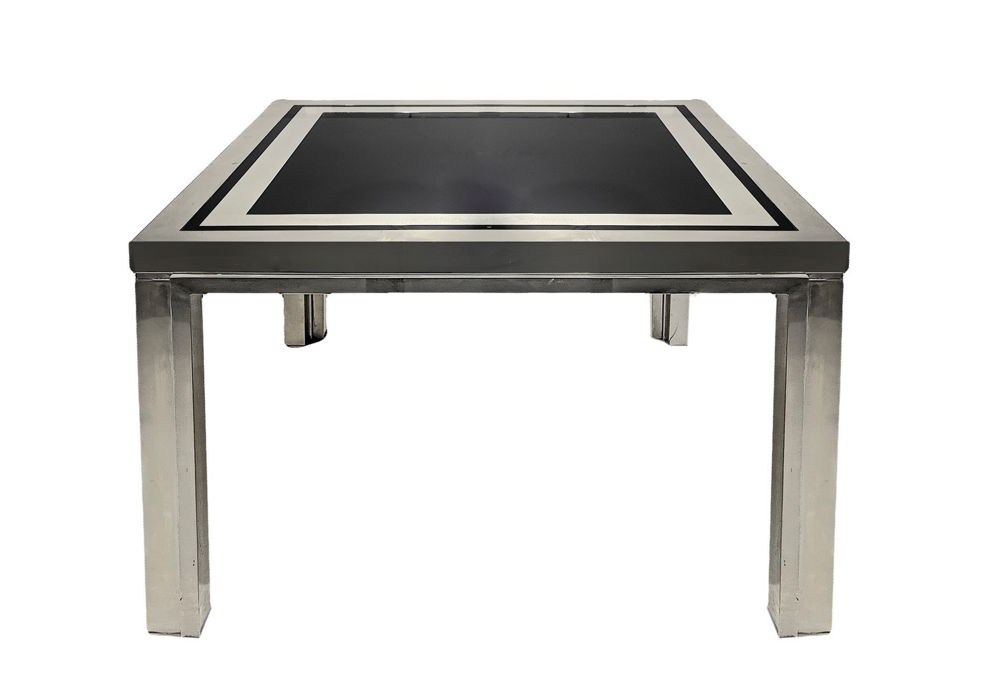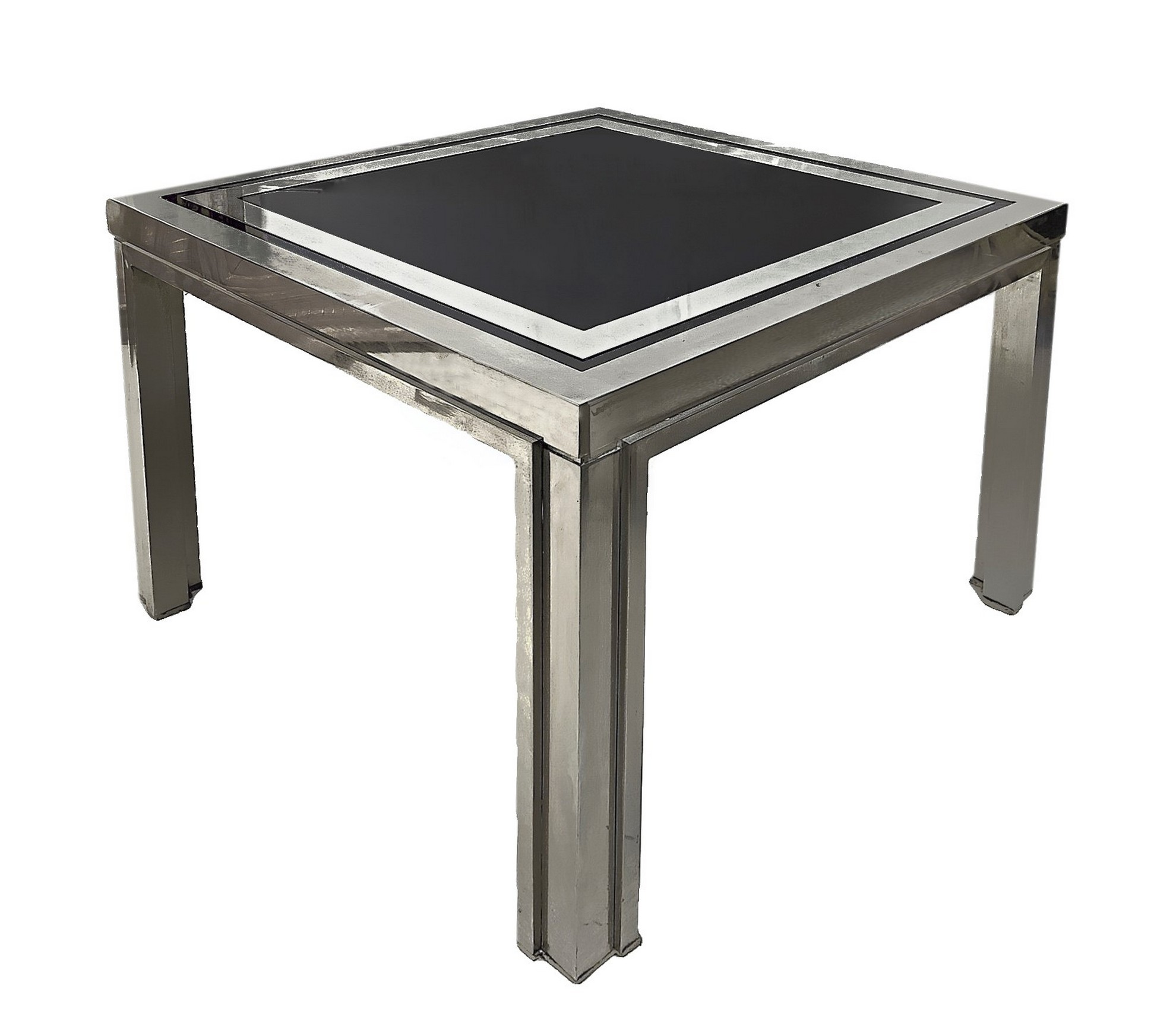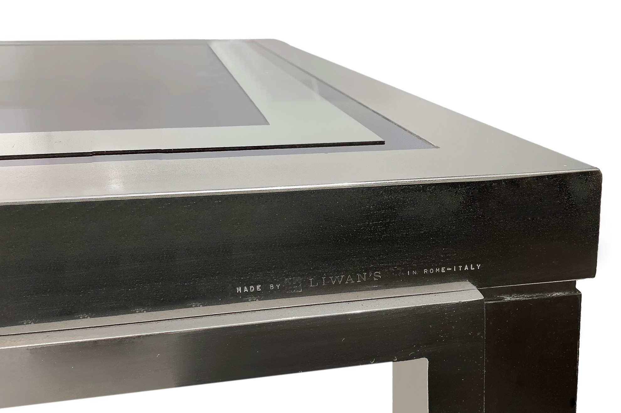 Liwans - Tavolino in ottone h cm 36 x cm 85 x cm 55 Rilievi geometrici, struttura e superficie interamente in ottone, doppia cornice. Segni d'uso. Roma, Italia.