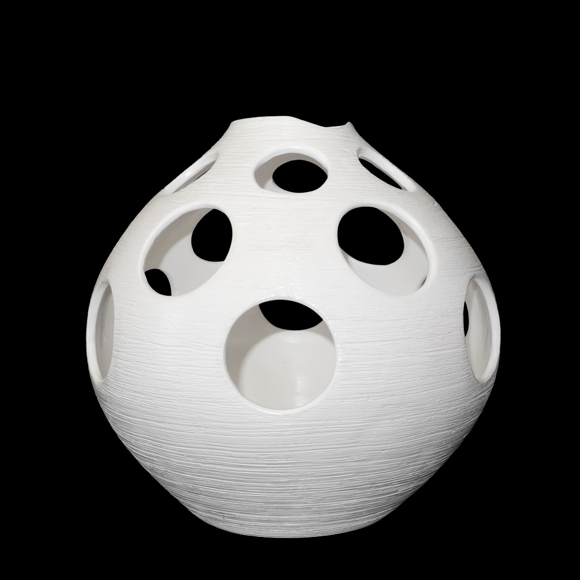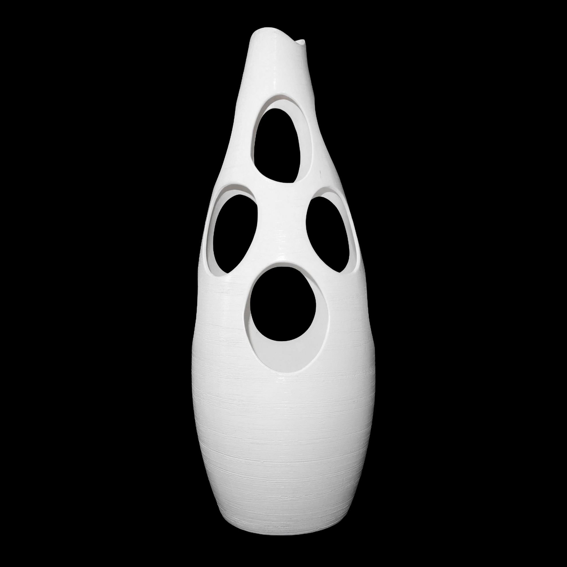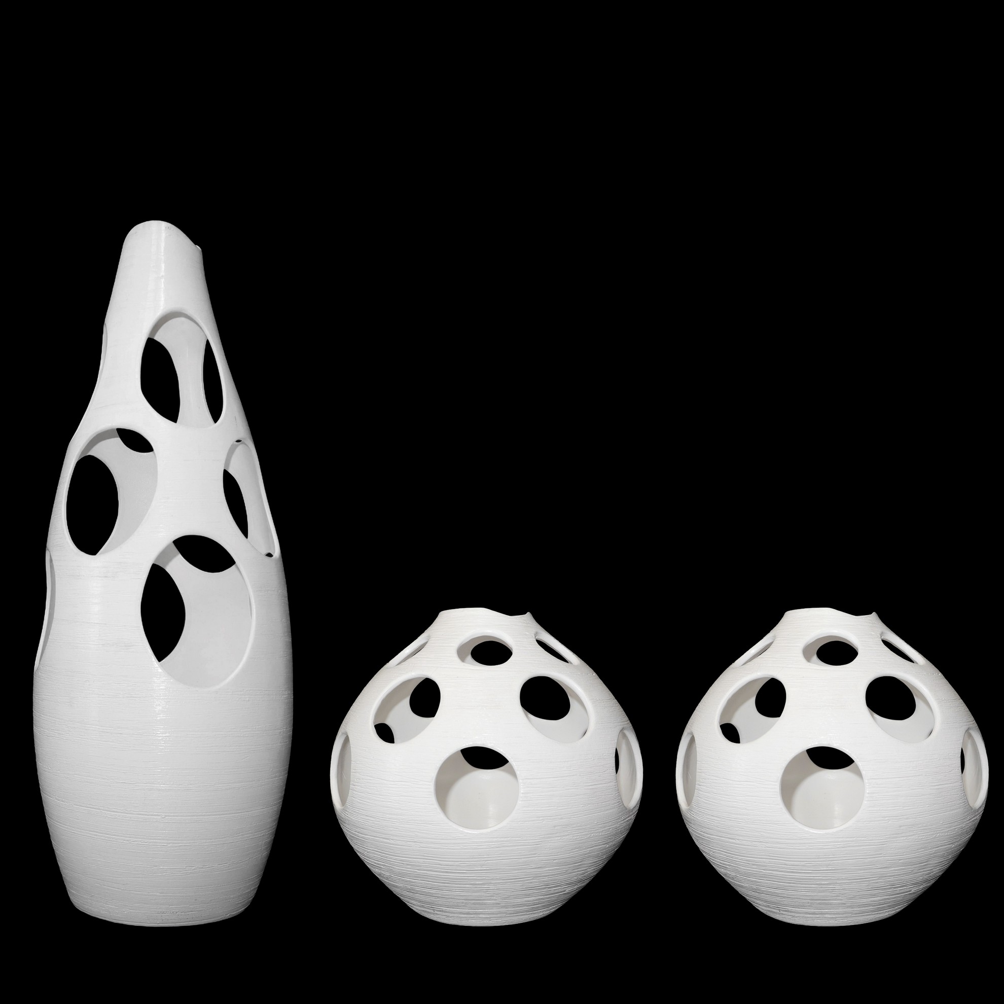 Lotto 206 | Gruppo composto da n. 3 vasi bianchi opaco in ceramica traforati, mod. Sheila