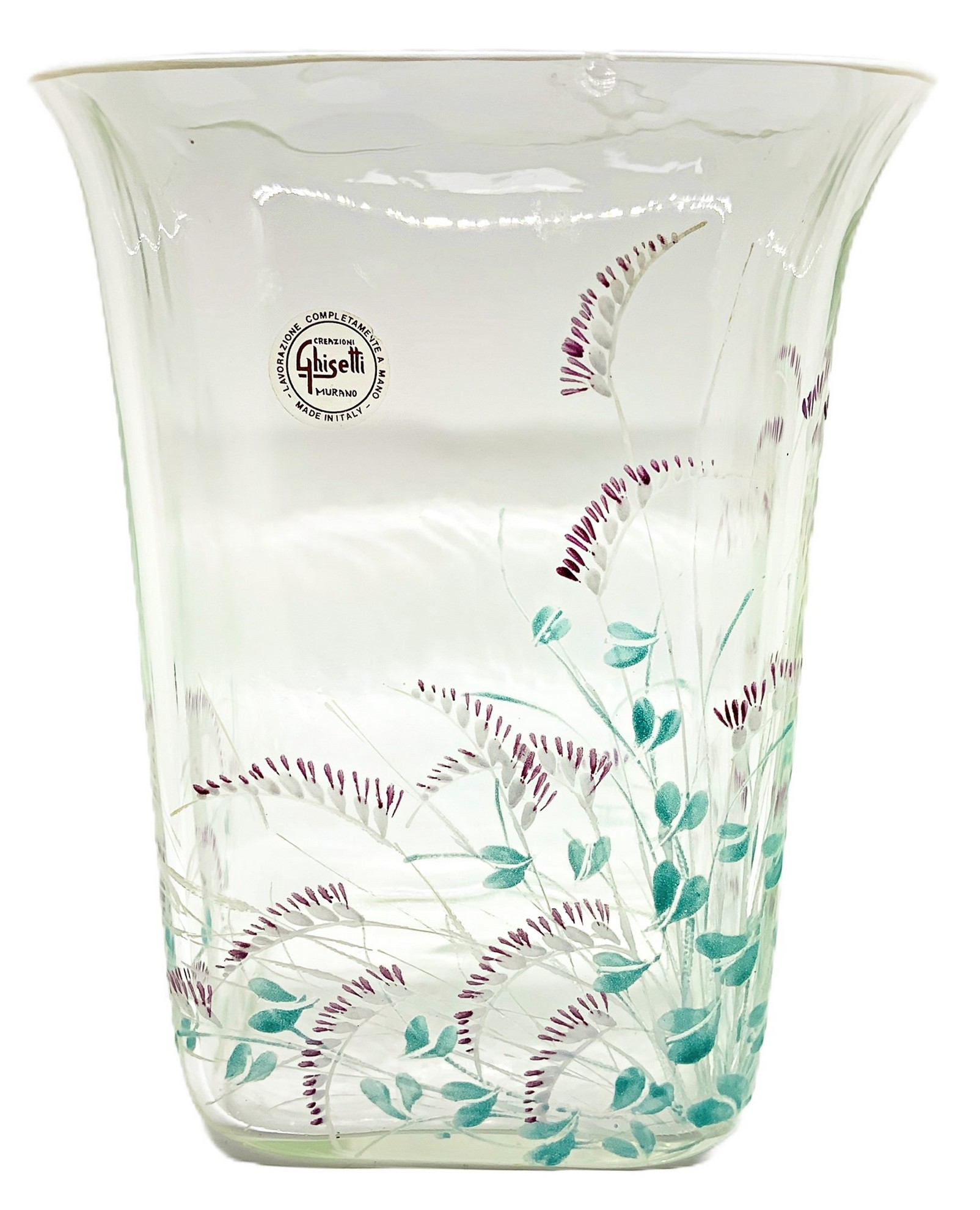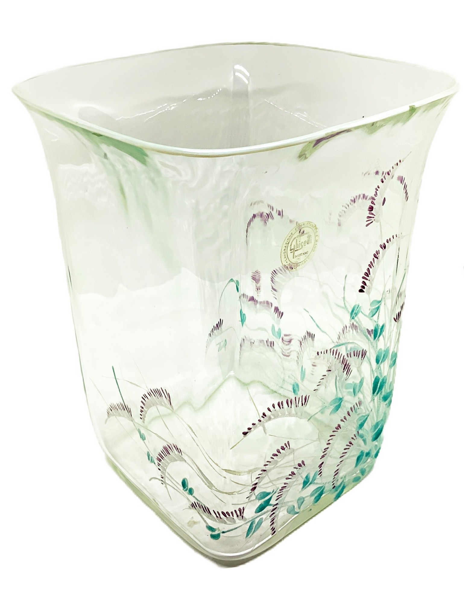 Ghisetti (Rovigo 1870) - Vaso in vetro trasparente di forma rettangolare con decori floreali