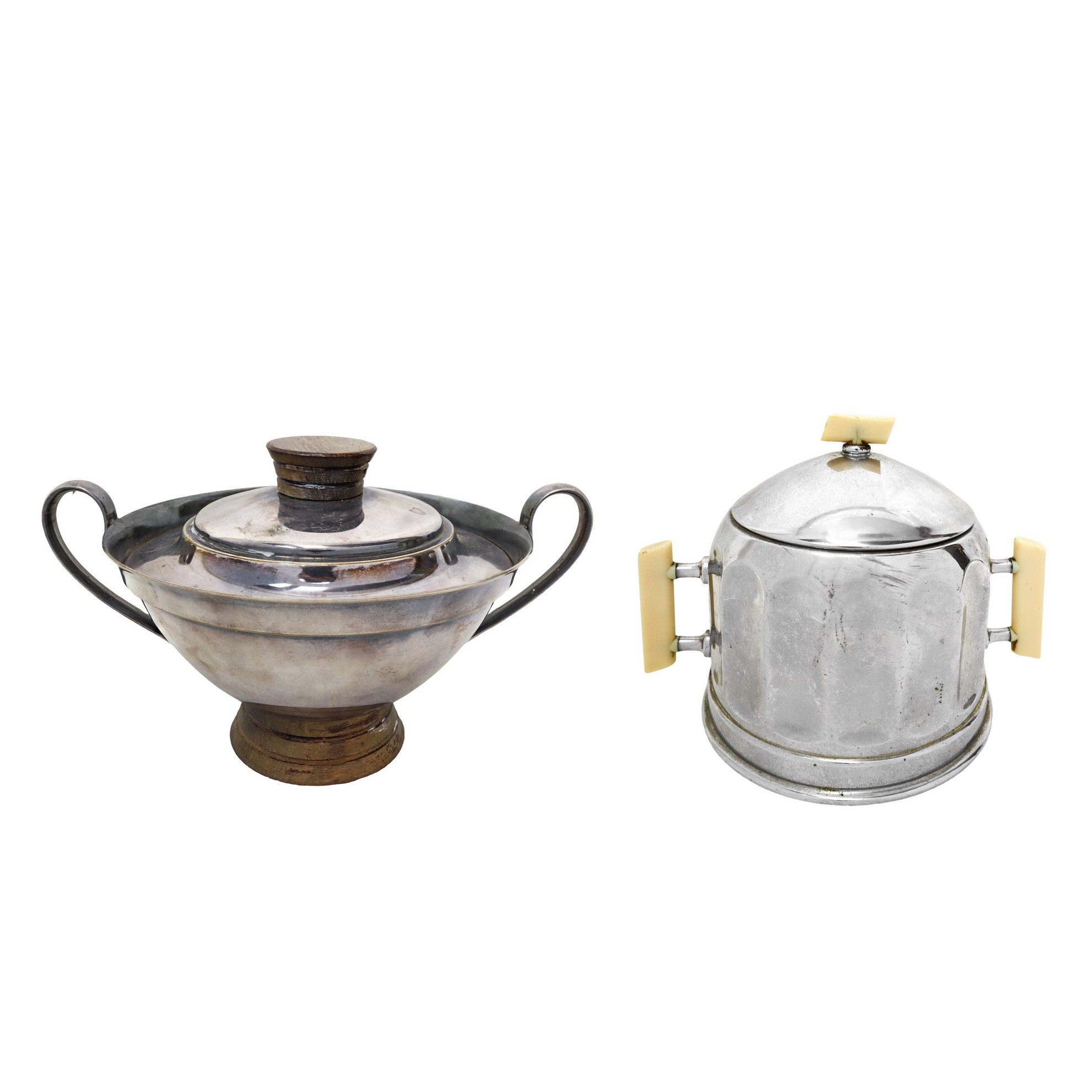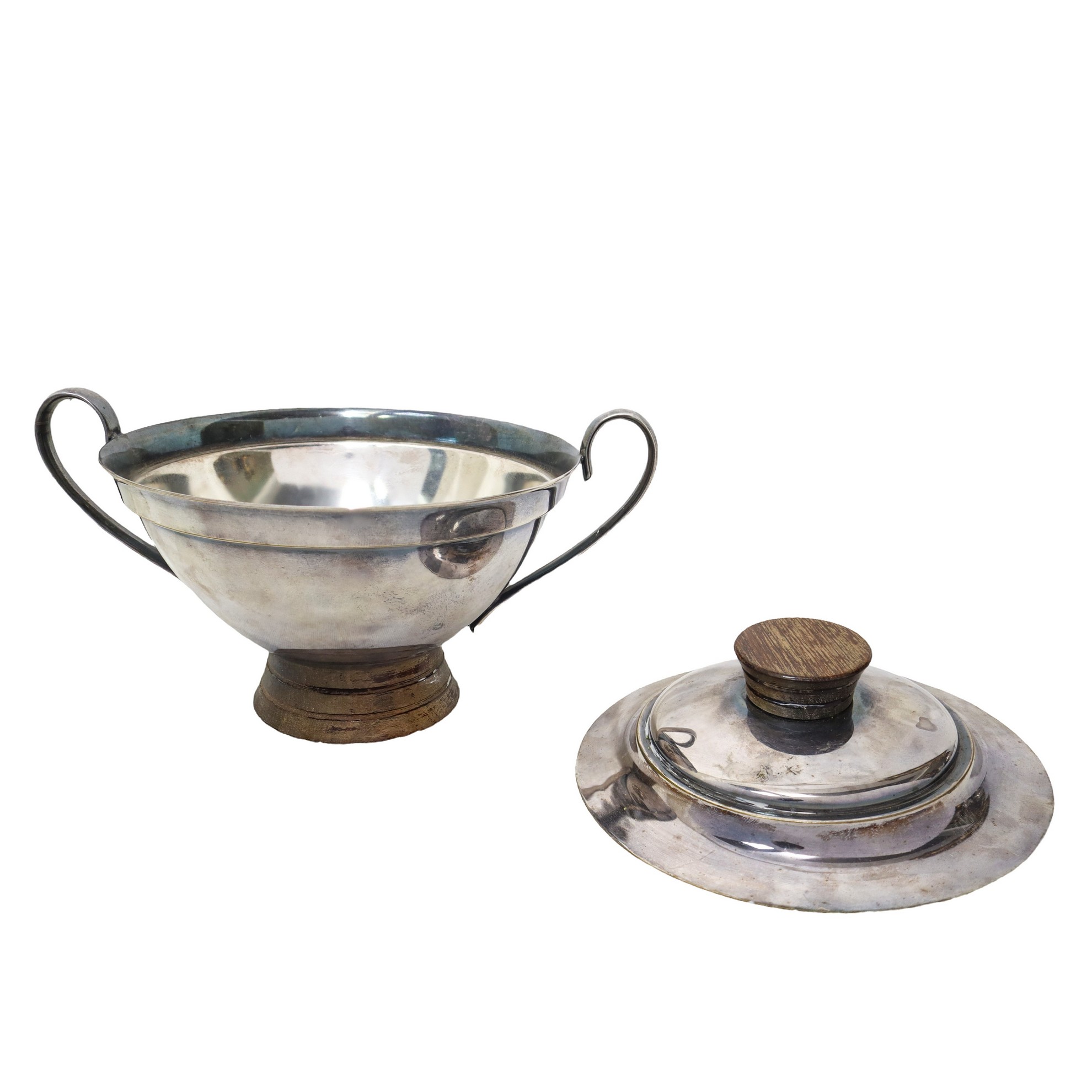 Coppia di zuccheriere Art Decò H cm 11, h cm 10 Zuccheriera con manici in legno e zuccheriera con manici in ossoZuccheriera con manici in legno e zuccheriera con manici in osso