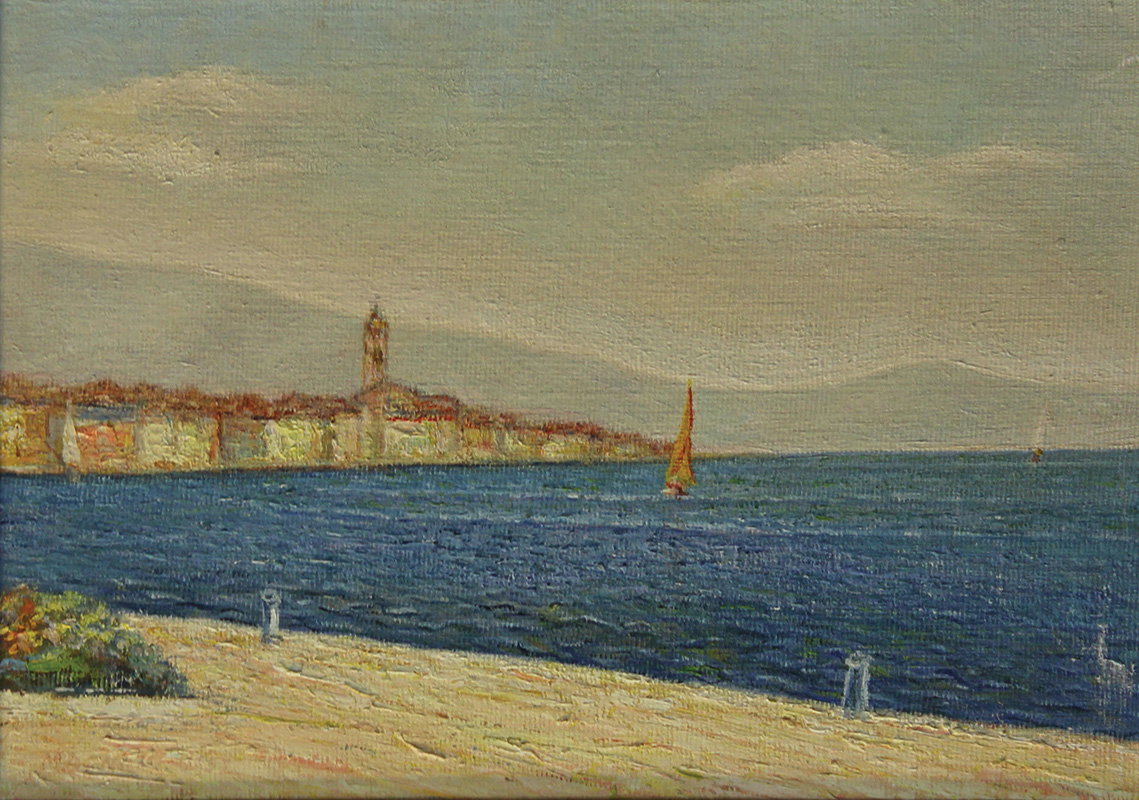 Magnani Paesaggio marino olio su cartone telato, cm. 25x35 firmato in basso a sinistra
