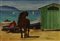 Masi Roberto Cavallo bruno e barche, tecnica mista su cartone, cm. 18x24 firmato in basso a destra, timbro dell'Archivio Roberto Masi al retro, certificato di autenticità ed archiviazione dell'Archivio Ufficiale Roberto Masi su fotografia