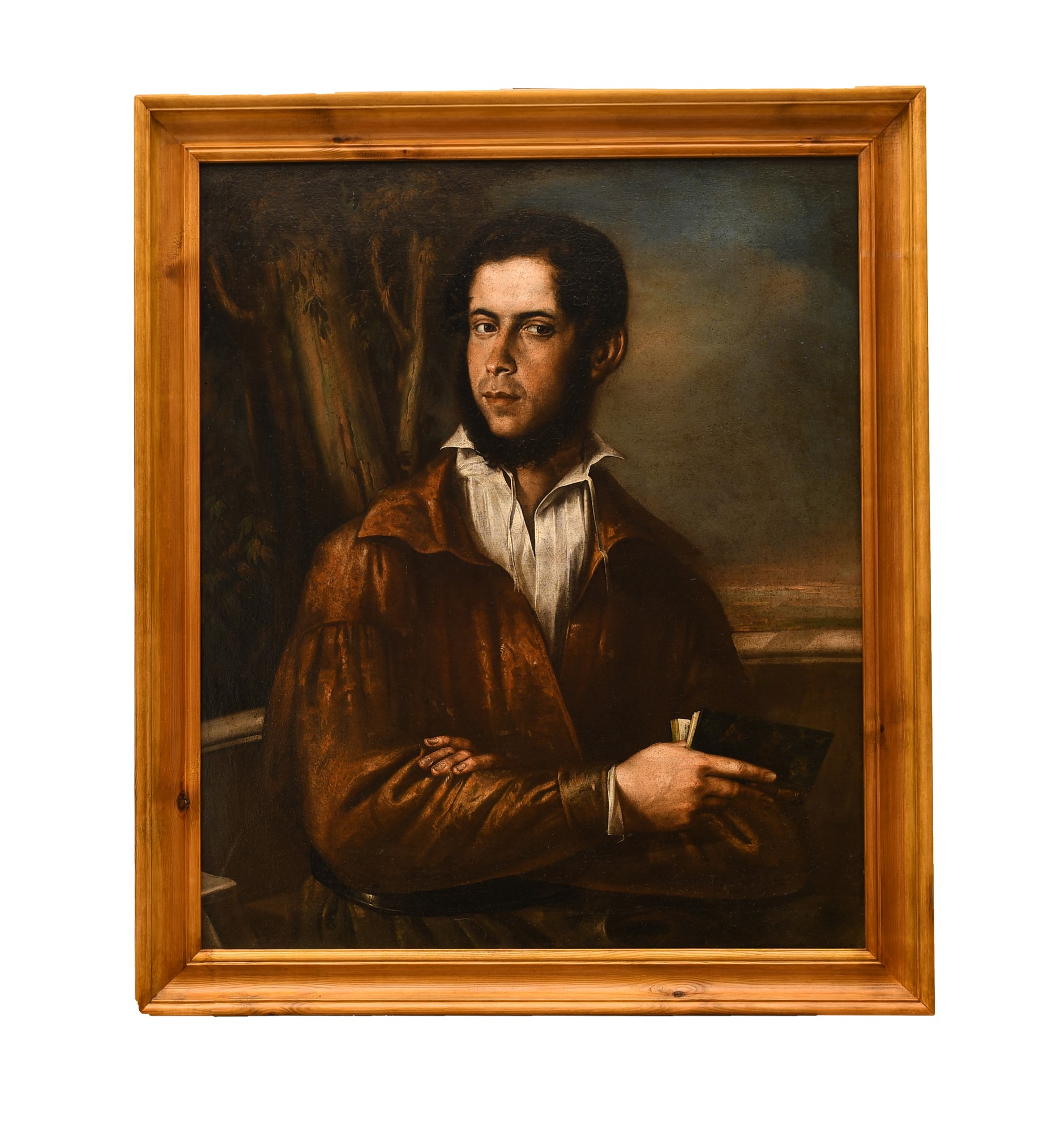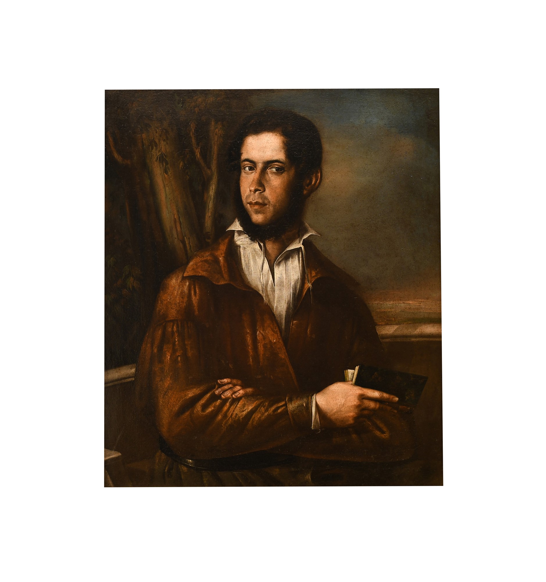 Salvatore Lo Forte (attribuito a) (Palermo, 1804 - Palermo, 1885) Ritratto di giovane barbuto con un libro in mano olio su tela cm 76X64; con cornice cm 87X64