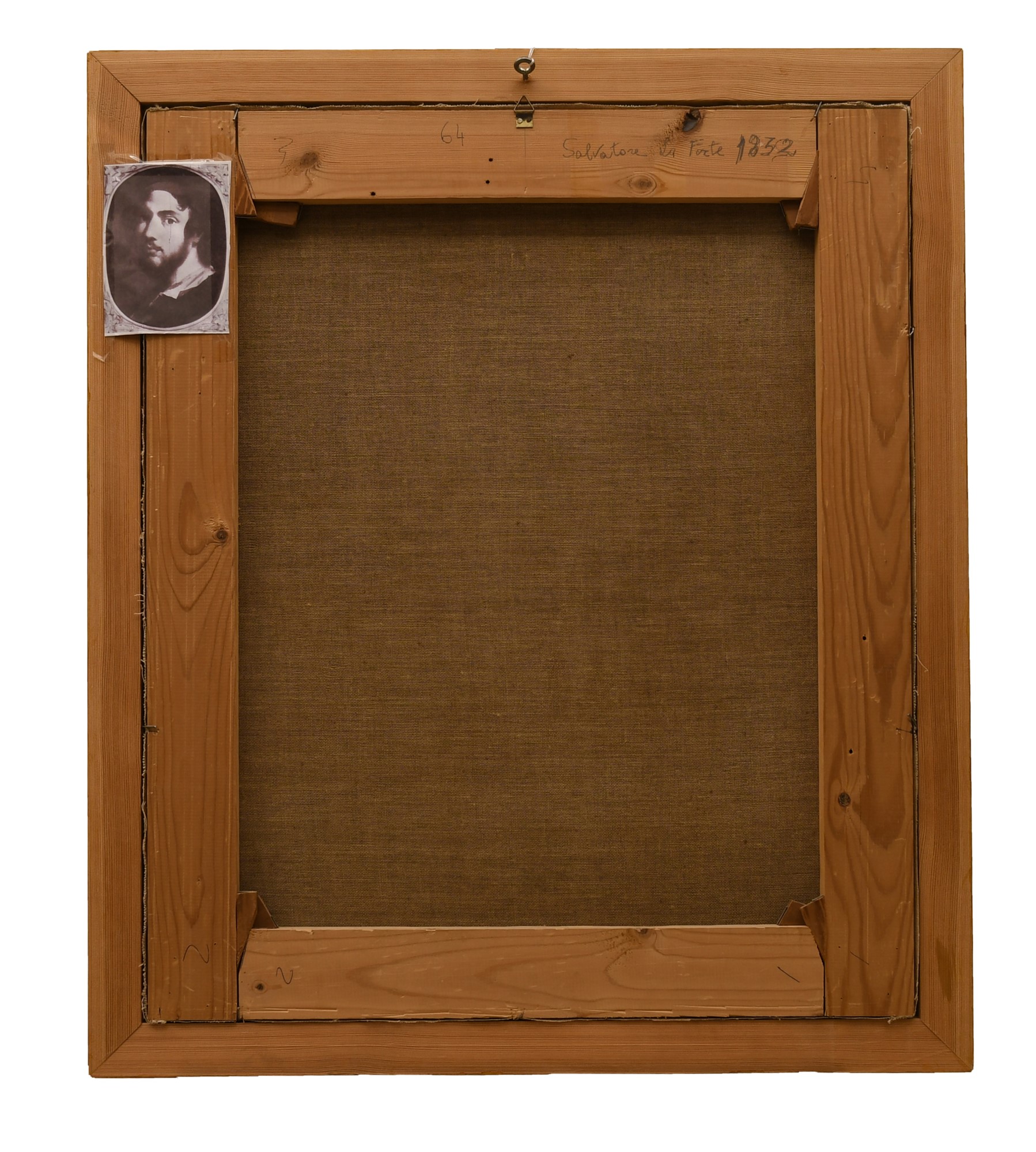 olio su tela cm 76X64; con cornice cm 87X64 Al retro tela attribuzione manoscritta al pittore siciliano con l'indicazione dell'anno 1832 e autoritratto in copia.