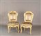 Sei sedie in legno laccato e parzialmente dorato, schienale di linea sagomata...