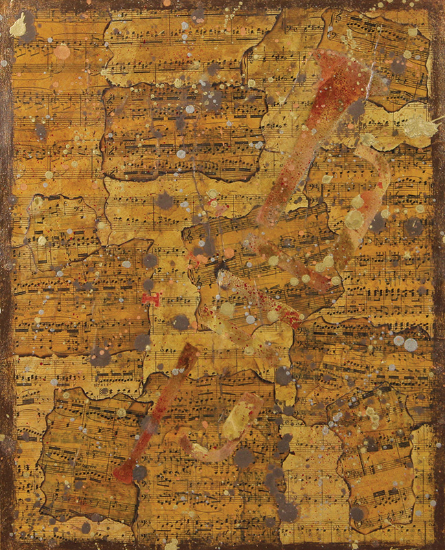 Trotta Fabrizio Bebop, 2009 smalti terre e acrilico su collage di spartiti applicati su tela, cm. 50x40 firmato in basso a destra, firmato e datato al retro, cerificato di autenticità e di archiviazione dell'artista su fotografia