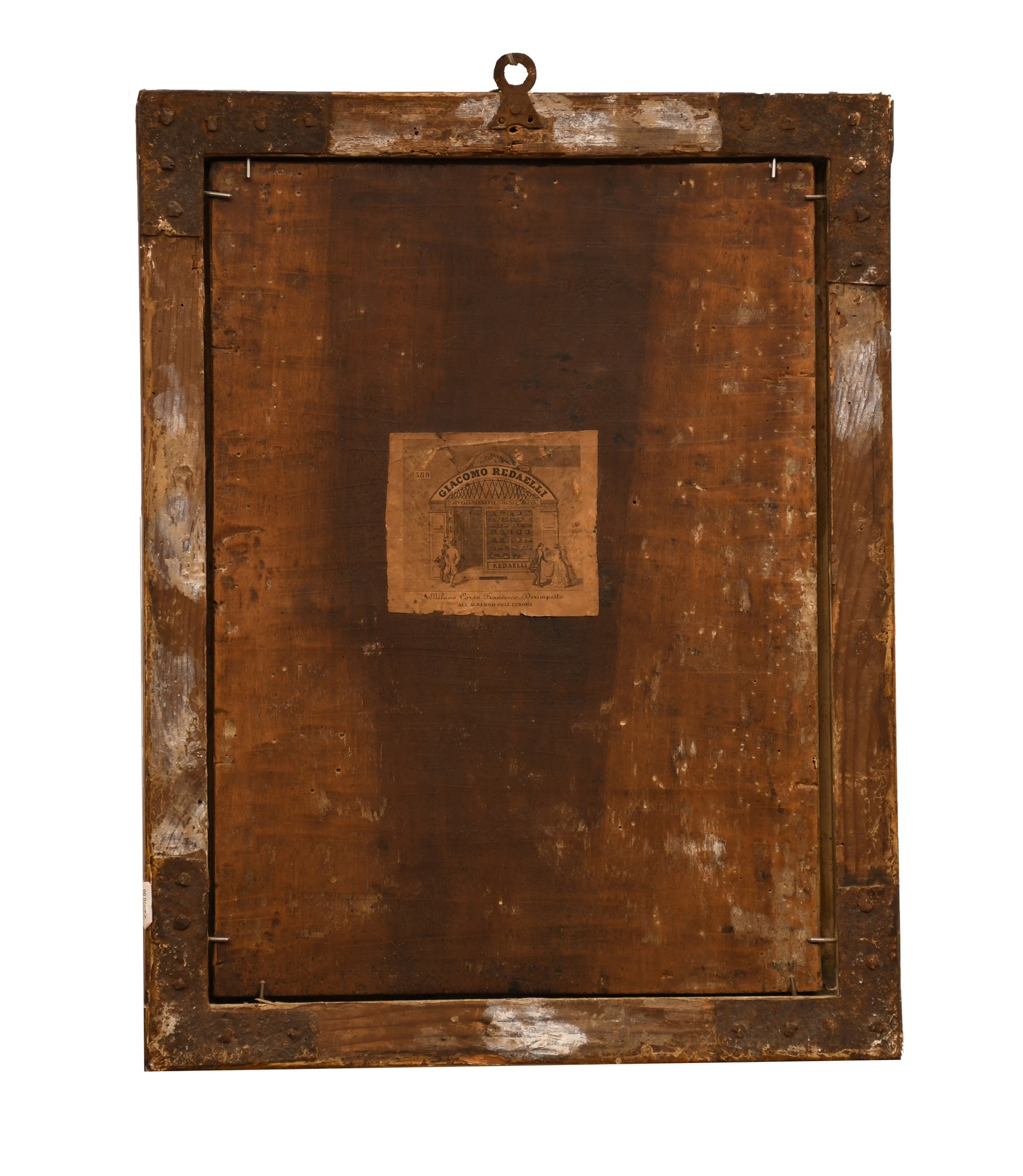 Scuola italiana del XVIII secolo ( - ) Ritratto di Vescovo con stola e paramenti accanto ad un tavolo olio su tavola cm 30x42