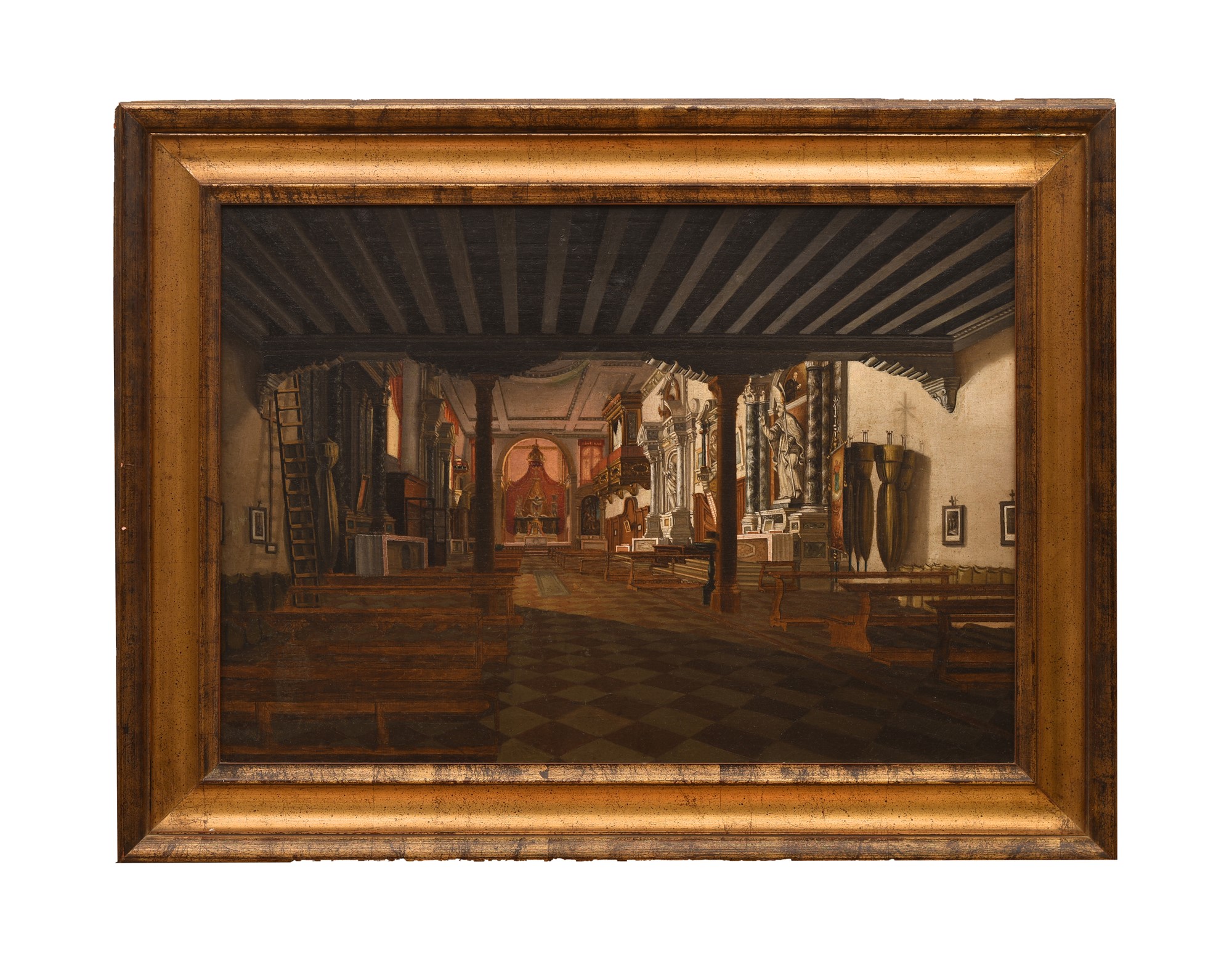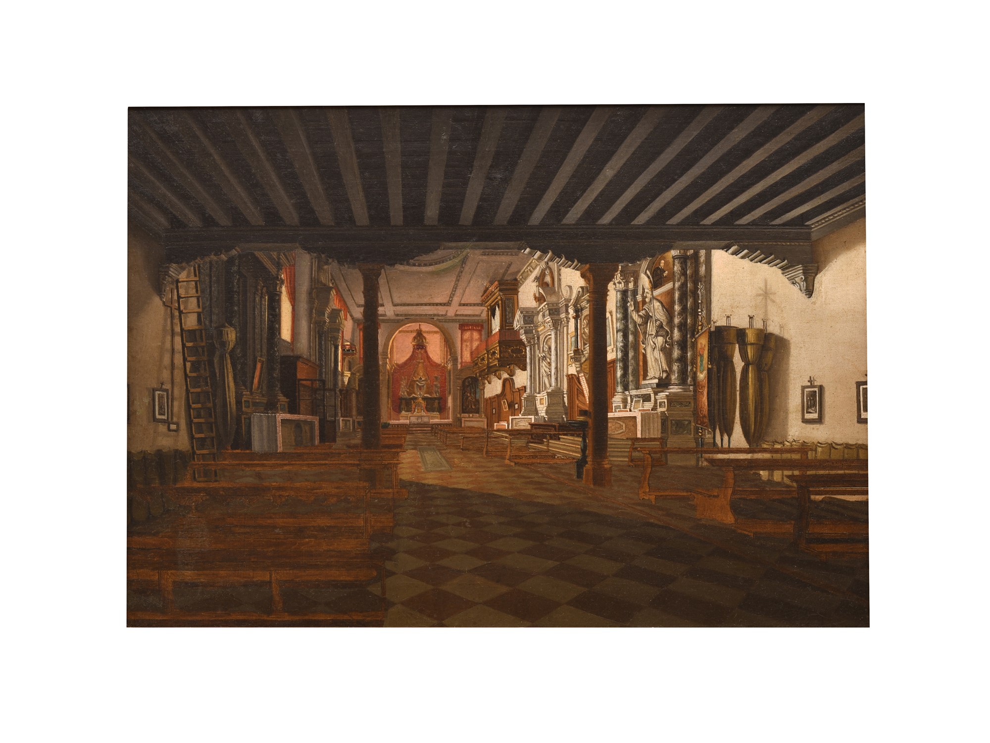 Pittore del XIX secolo ( - ) Interno di chiesa Olio su tela cm 50x71