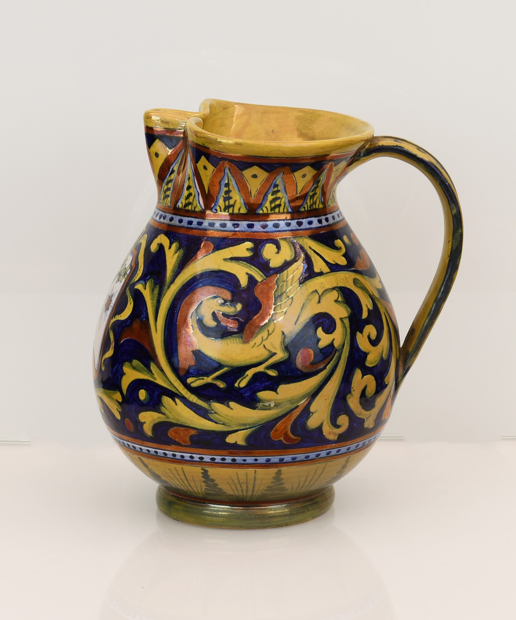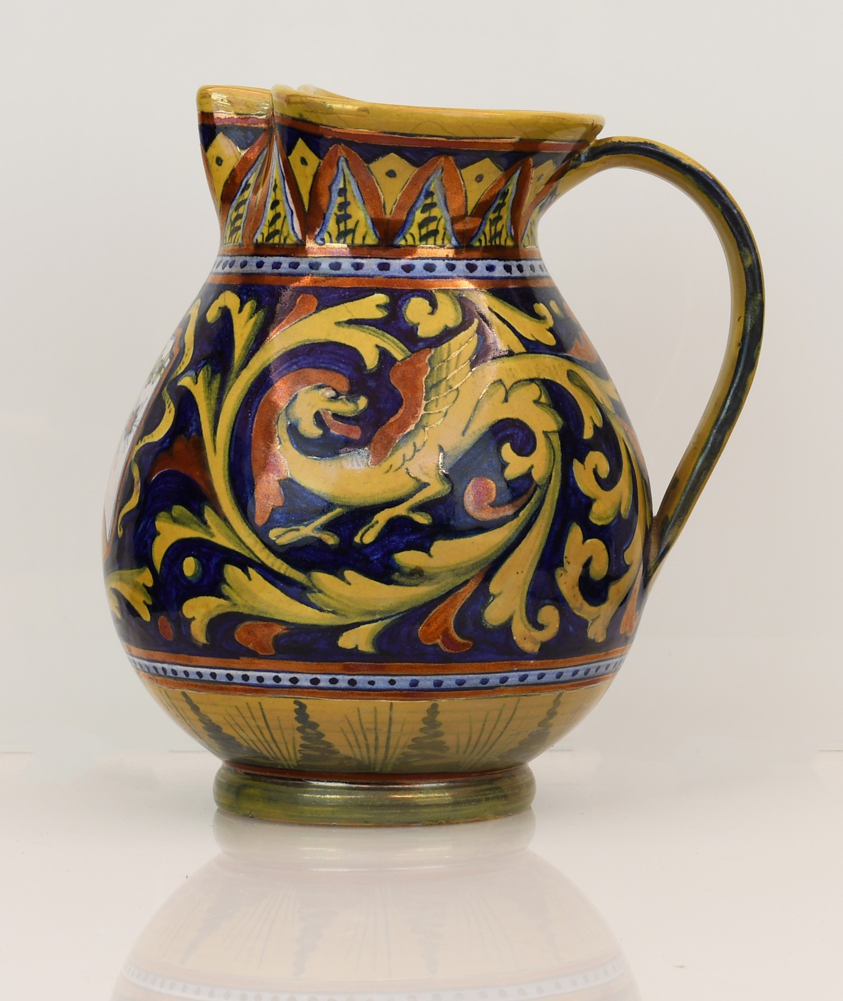 Brocca in ceramica dipinta a lustro Gualdo Tadino siglata Paolo Rubboli