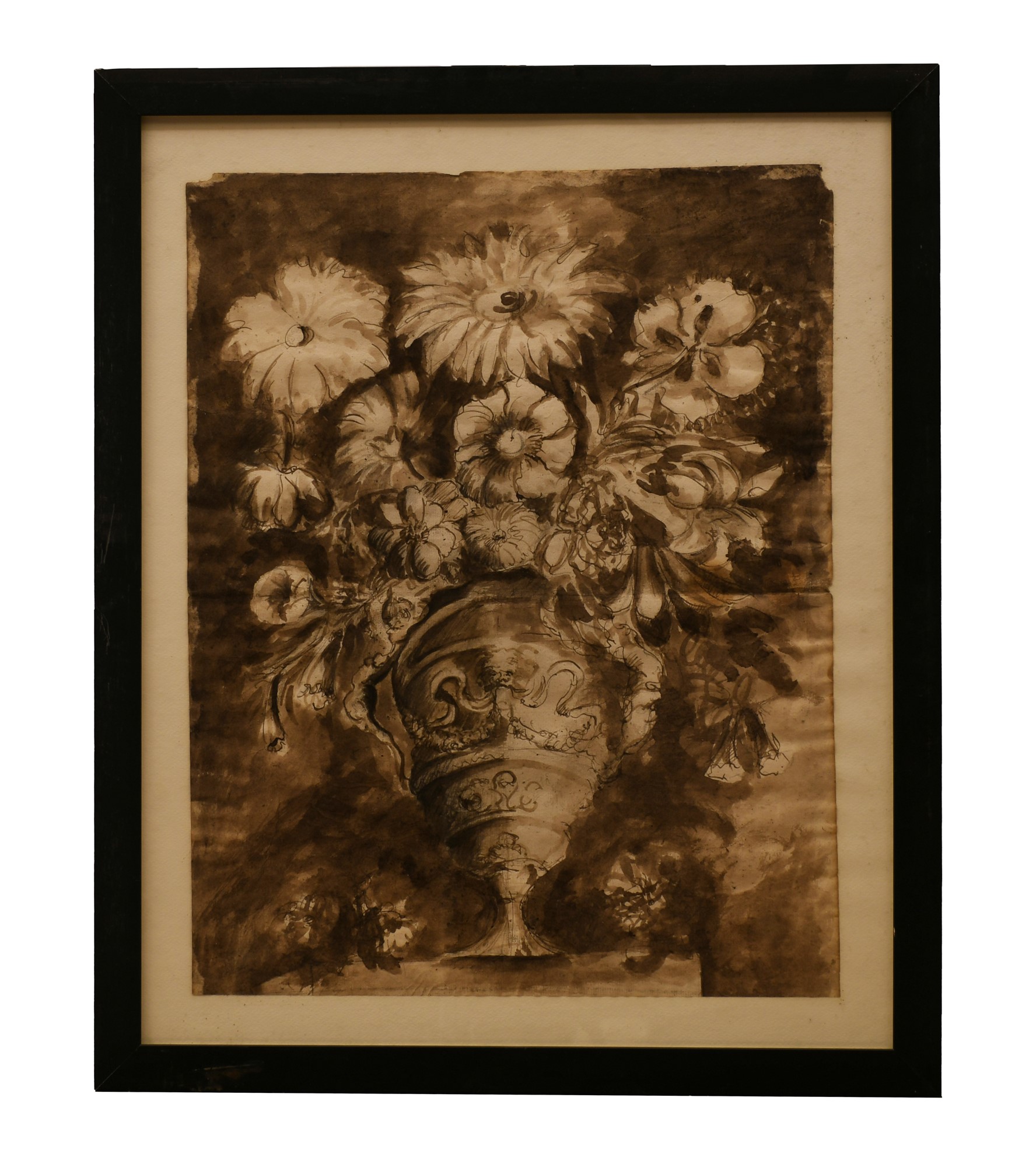 Vaso di fiori China acquerellata su carta cm 53,5x68,7