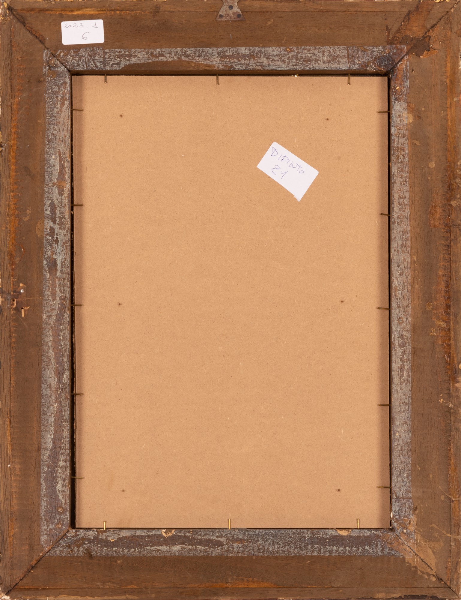 Cornice a doppia modanatura di vernice nera e dorata. Il dipinto è pubblicato.