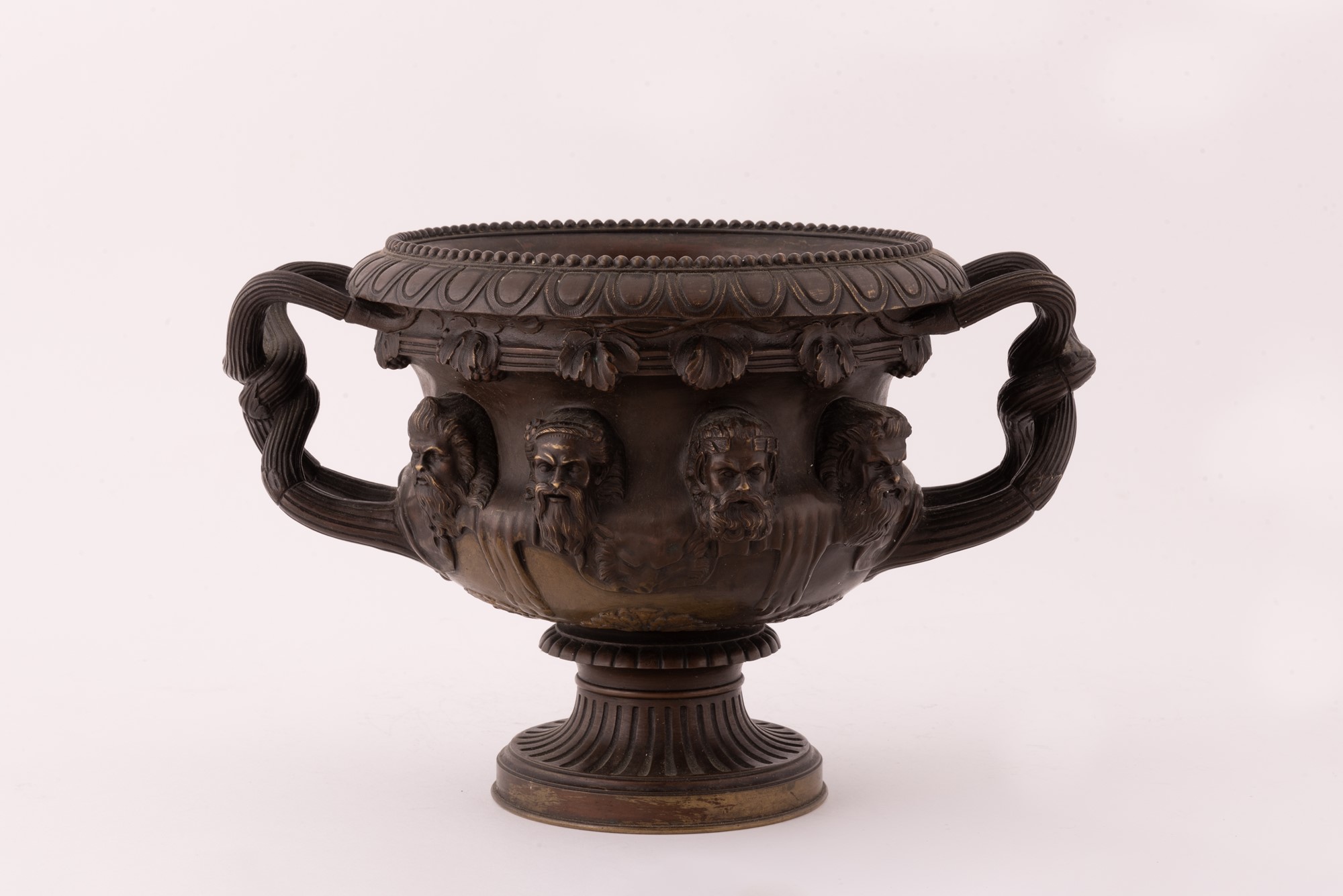 CENTROTAVOLA IN BRONZO BRUNITO A FORMA DI COPPA CON A RILEVO 8 VOLTI DI FIGURE MITOLOGICHE XIX Sec.