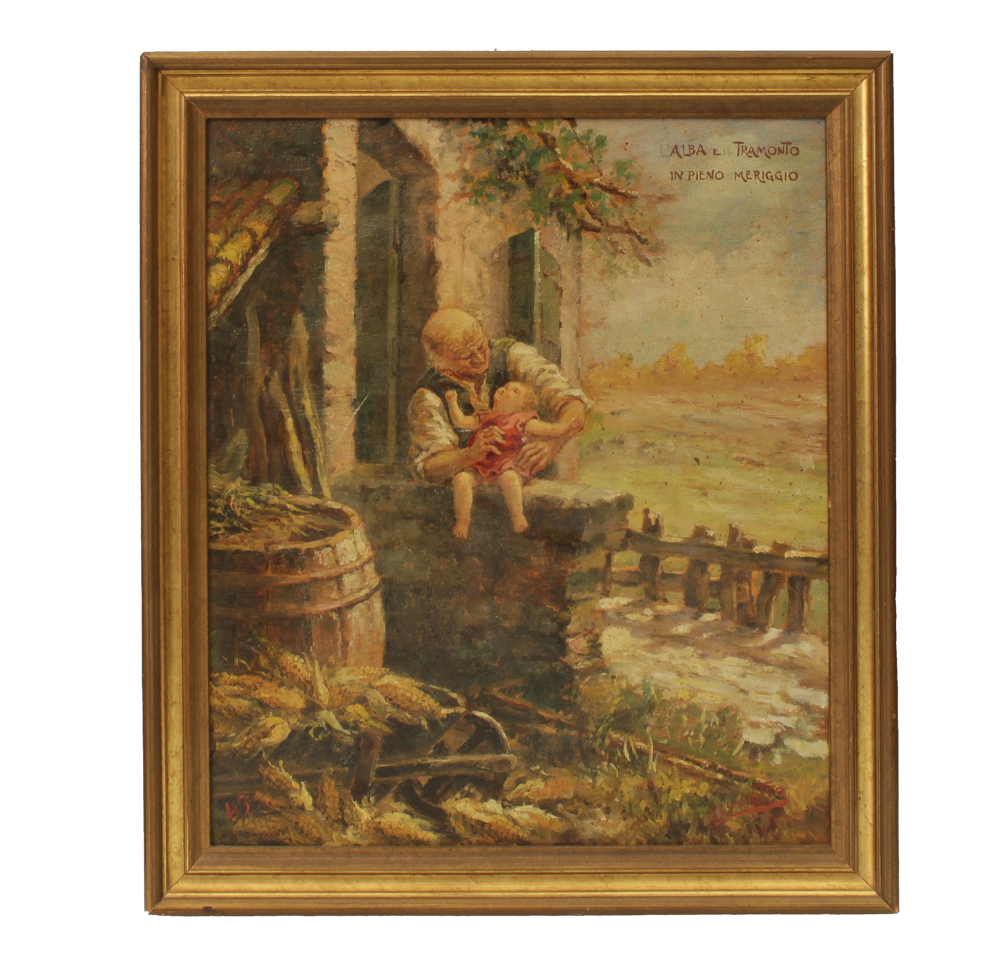 cm 33x27,5; con cornice cm 38,5x34 Olio su tavoletta di compensato firmata in basso a destra "Lucietto" e datata in basso a sinistra '49