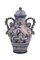 Vasi Savona in ceramica bianca e blu con paesaggi e girali.