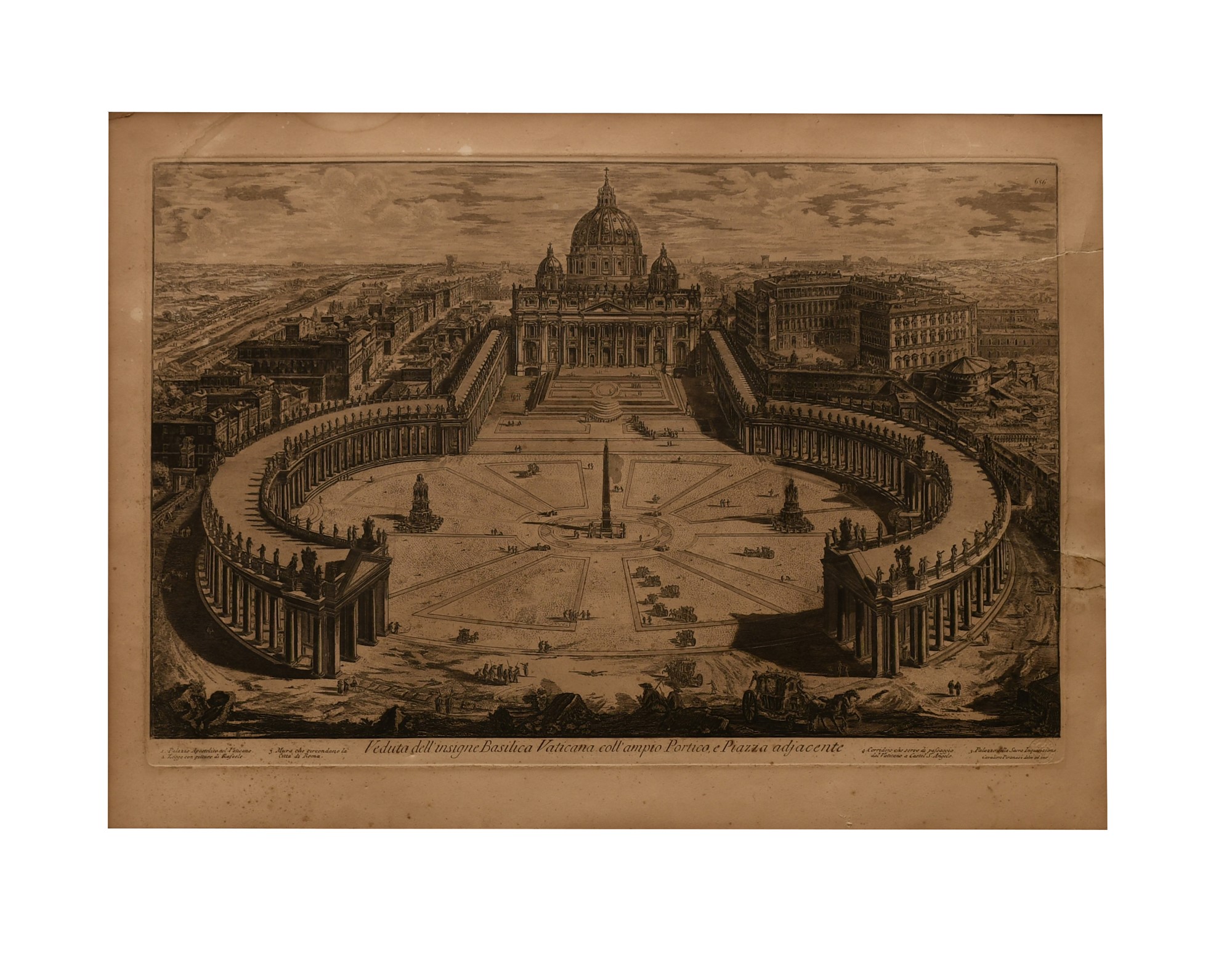 Incisione di Piranesi Basilica Vaticana cm 57x78; con cornice cm 63x85