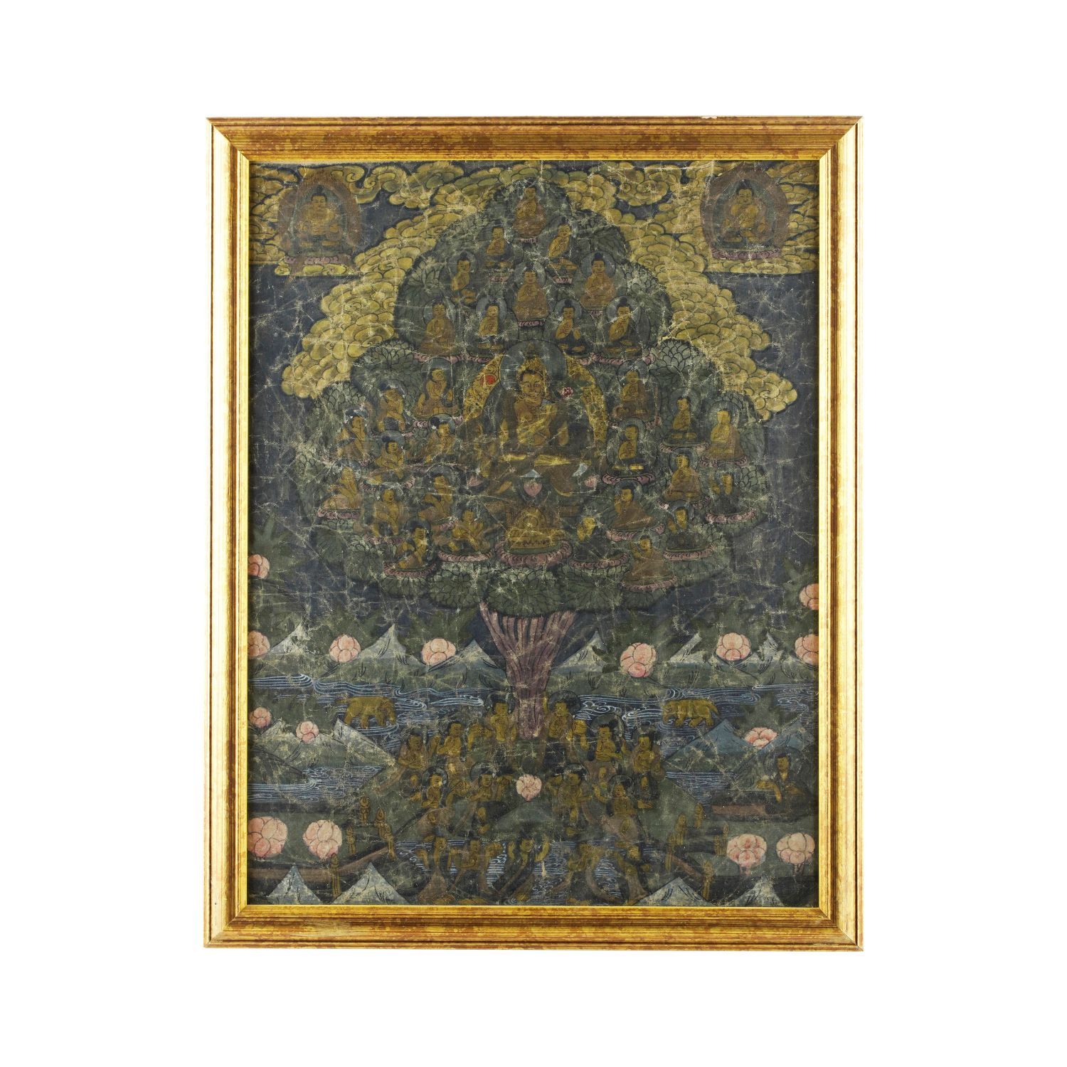 Storia di Budda XIX/XX secolo dipinto ad olio su tela 43 x 32 cm