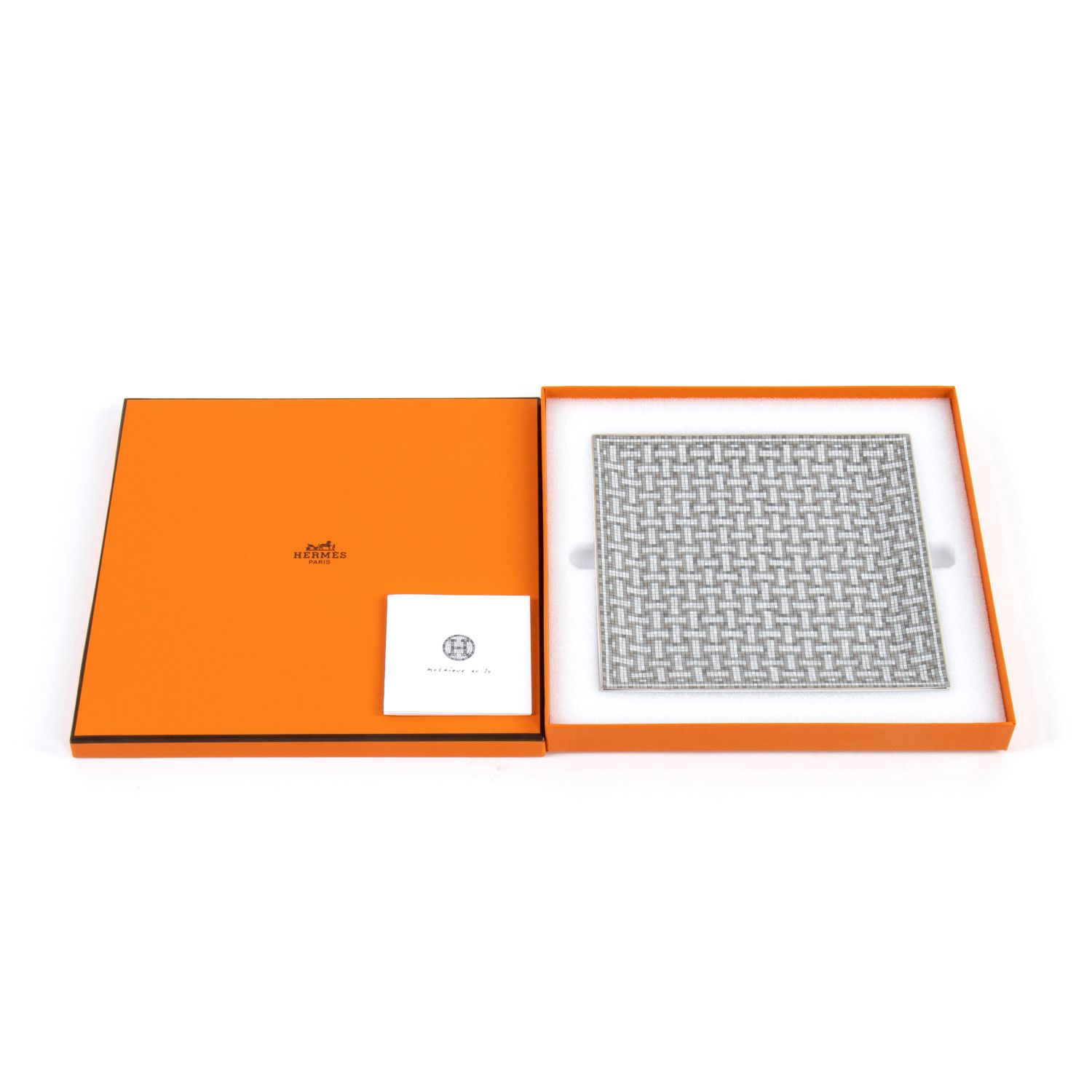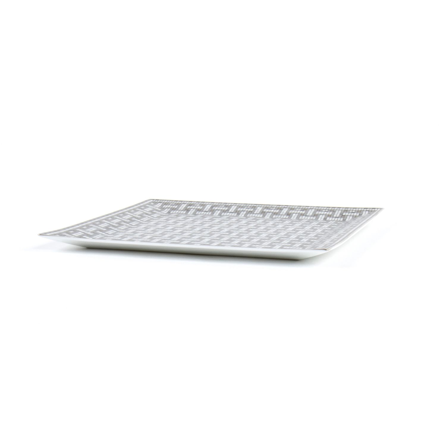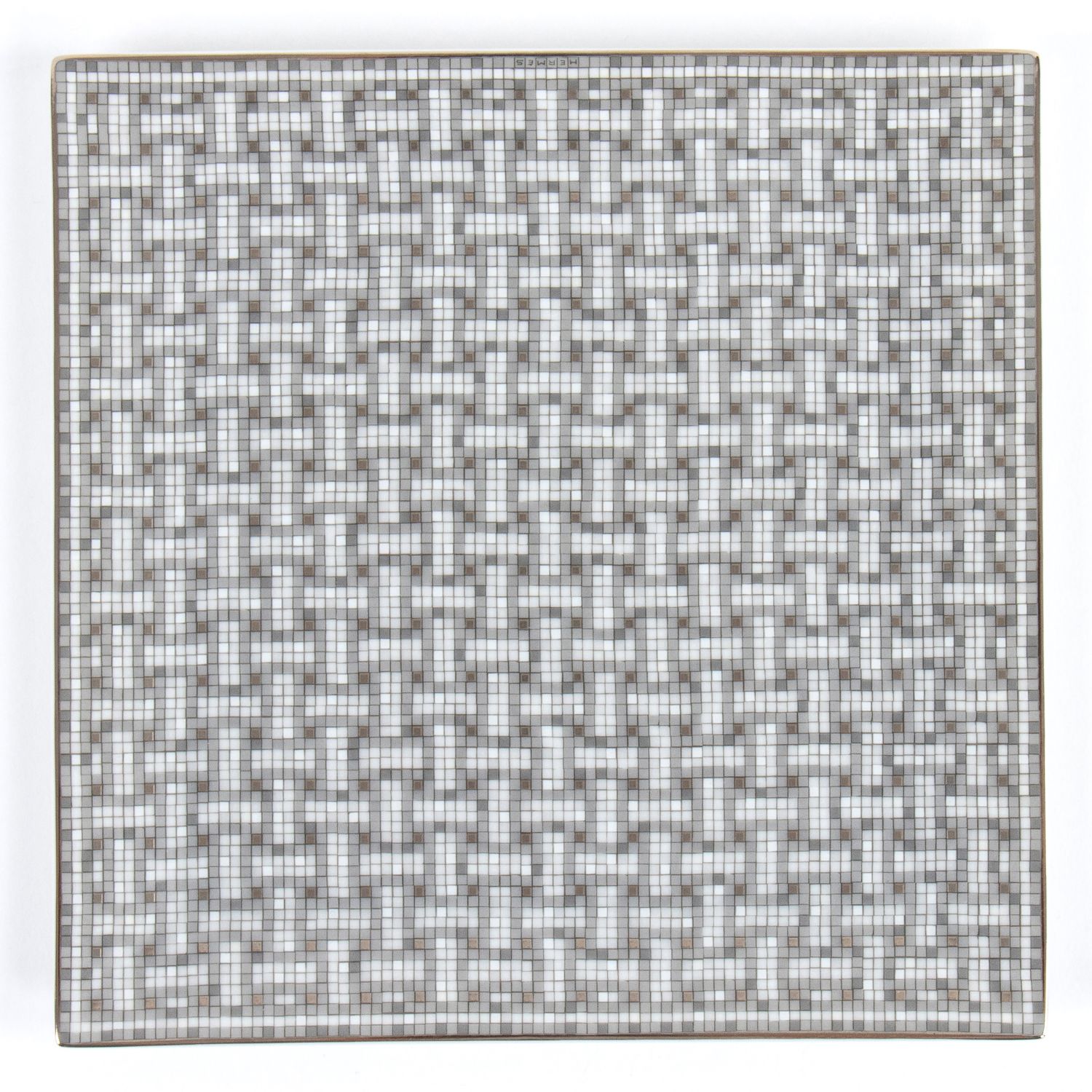 Piatto Hermes in porcellana motivo decorativo mosaico color argento, scatola originale, grado di condizione generale A (nuovo)