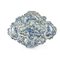 diametro 42,5 x 32 cmdi forma ovale di linea centinata all'orlo, con decoro a scena di paesaggio con torre e casa al centro del fondo, bianca e blue. produzione ligure