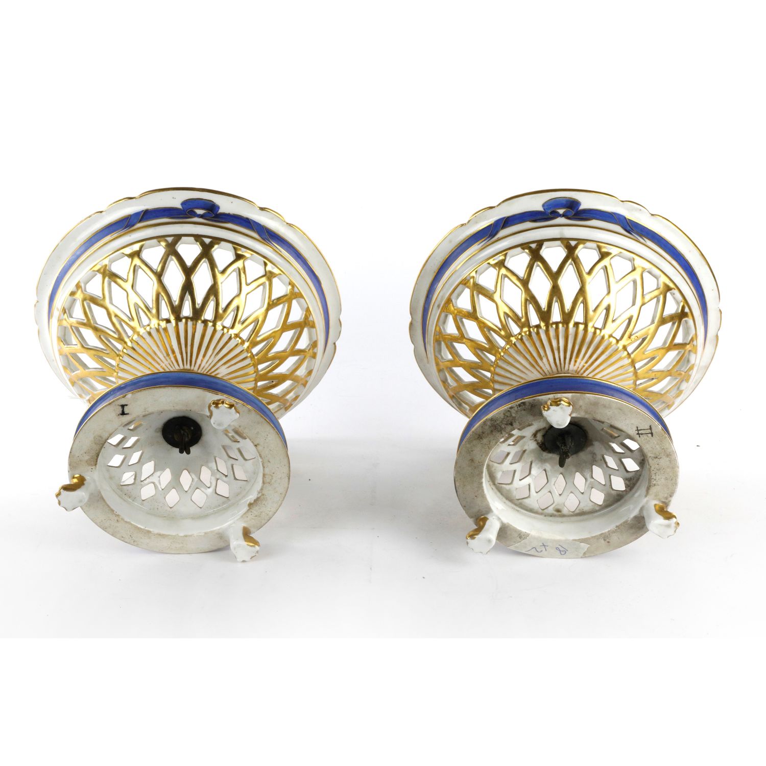 Coppia di fruttiere in porcellana bianca inizi XX secolo 21 x 15,5 cm