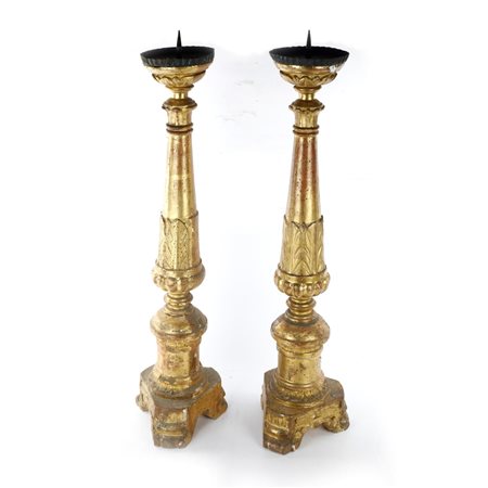 Coppia di torcieri in legno dorato prima metà XIX secolo
