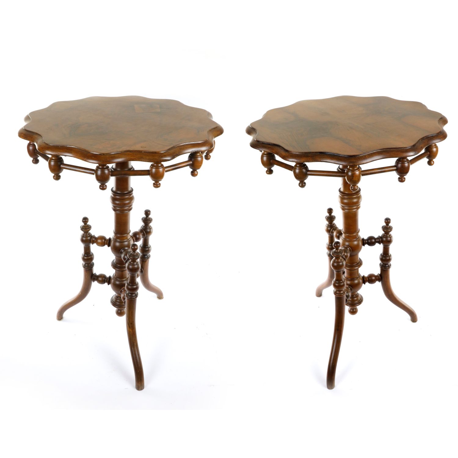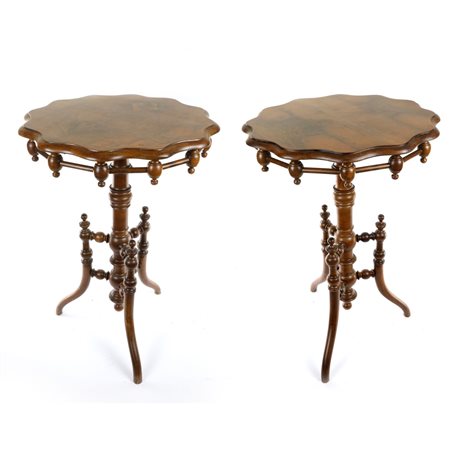 Coppia tabureaux in noce piano tondo polilobato XX secolo