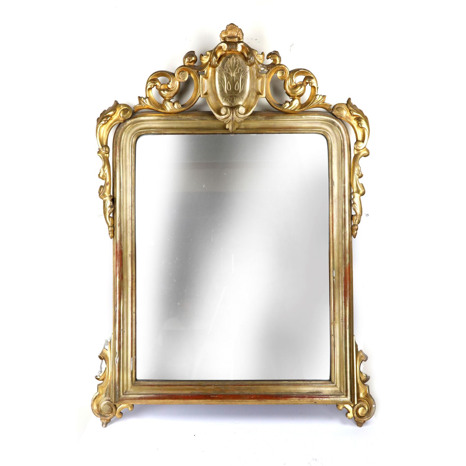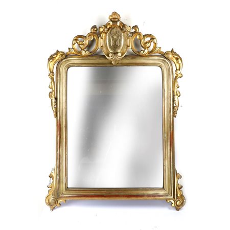 Specchiera in legno dorato con cimasa fine XIX inizi XX secolo