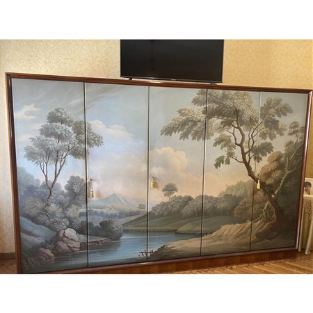 300 x 194 x 60 cma 5 sportelli decorati con scorcio di fiume con montagne ed alberi.