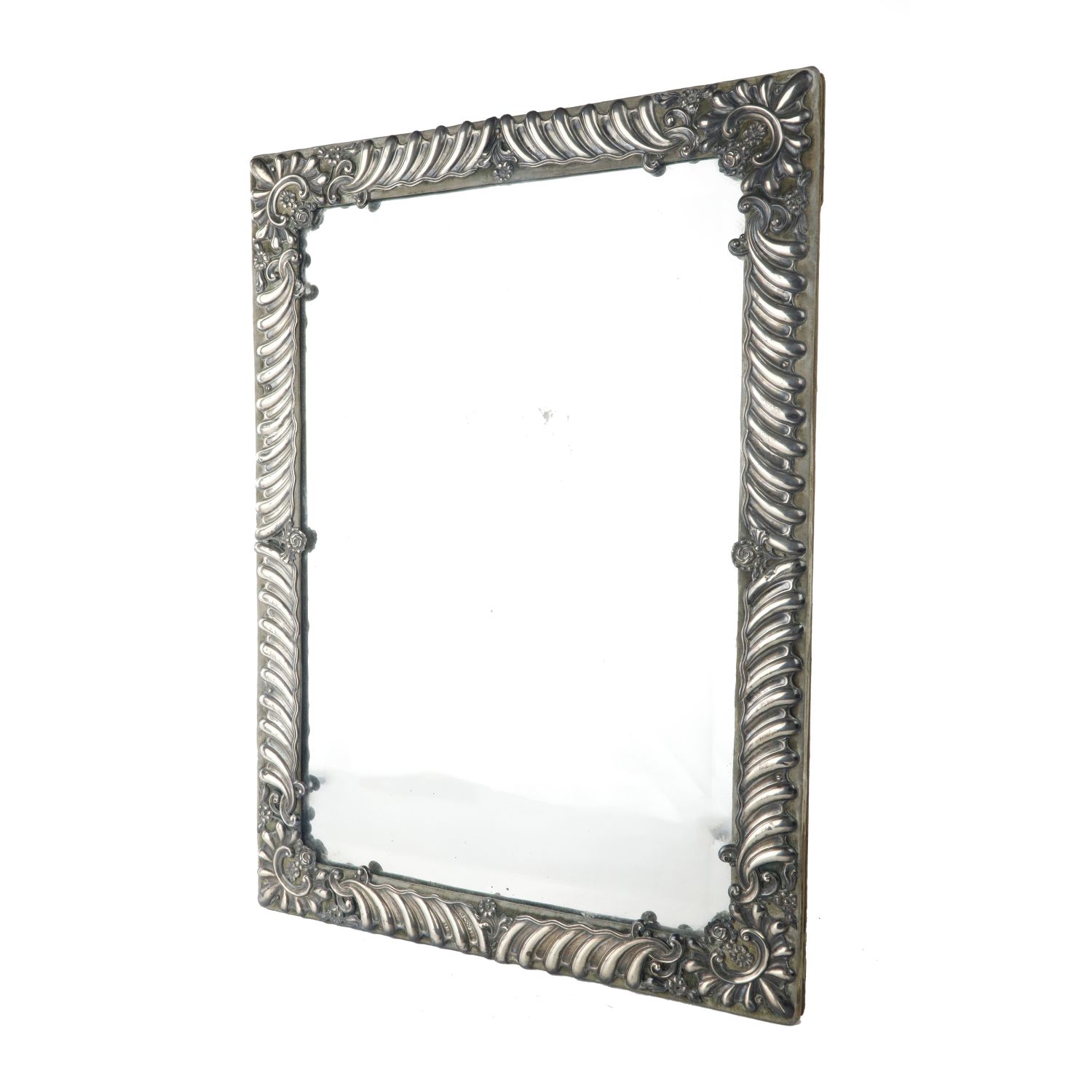 Specchiera d'appoggio in argento e vetro molato metà XX secolo 45 x 33 x 2 cm