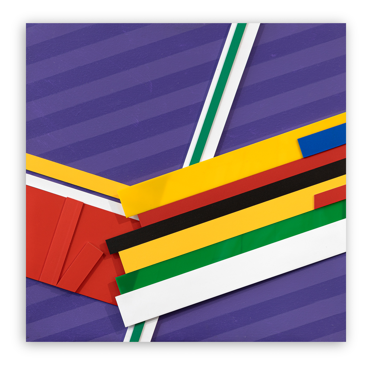 Acrilici e applicazioni di plastiche sagomate e colorate su tela