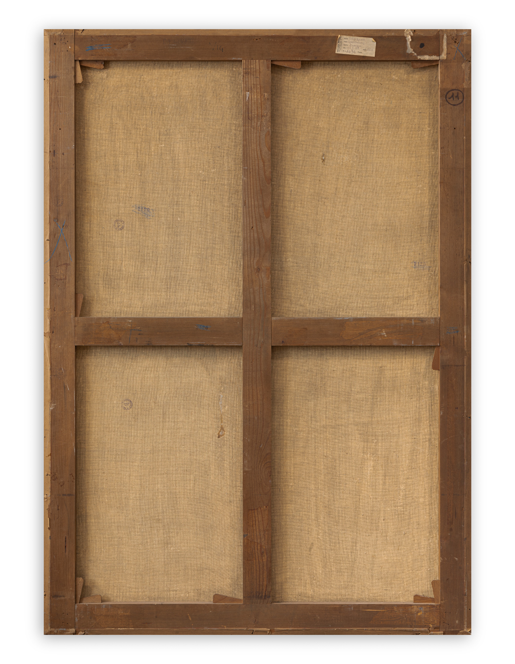 Etichetta della Galleria Mutina (MO) con caratteristiche tecniche dell'opera al retro