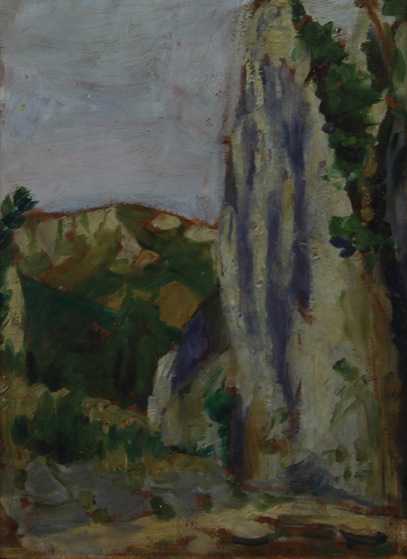 Montanari Ettore Paesaggio olio su tavola, cm. 34,5x25,5 firmato al retro della tavola dove è presente un altro dipinto