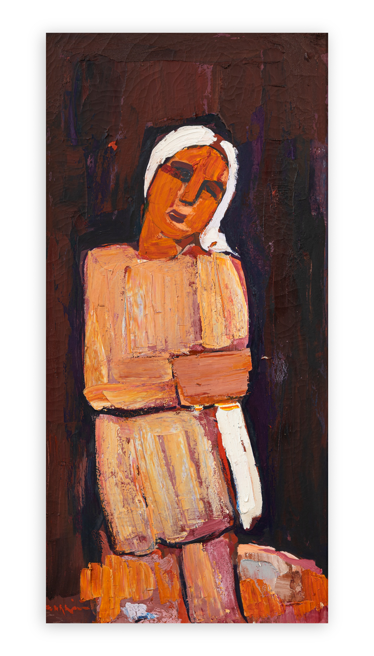 L'opera presenta un piccolo foro e cadute di colore