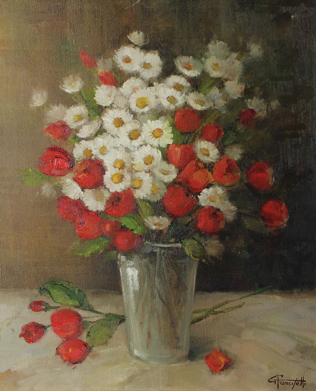 Francesetti Gilberto Il vaso di cristallo, 1989 olio su tela, cm. 60x50 firmato in basso a destra, certificato di garanzia al retro firmato dall'artista