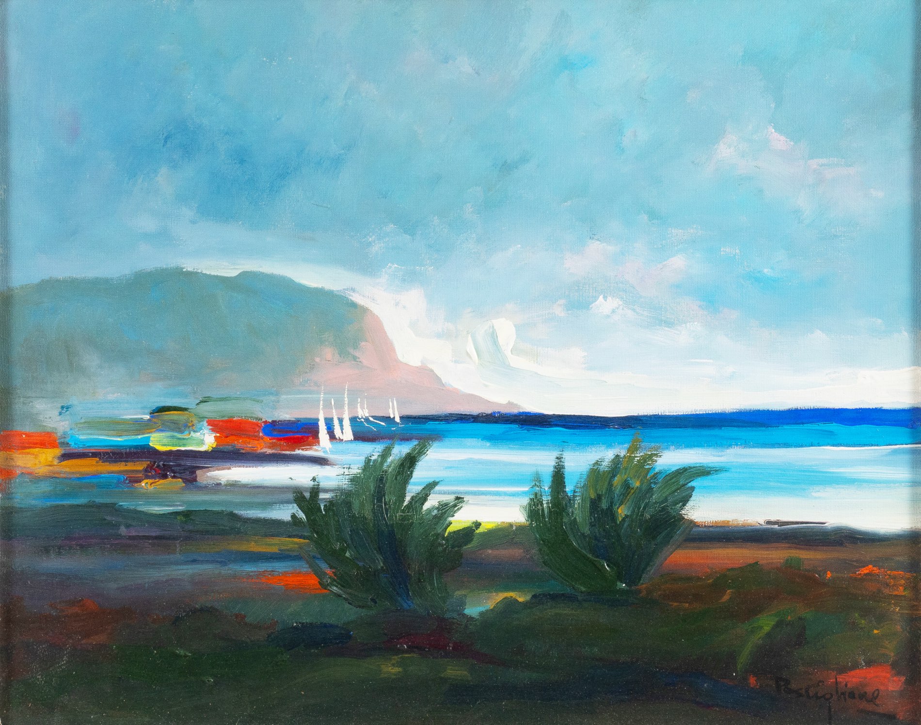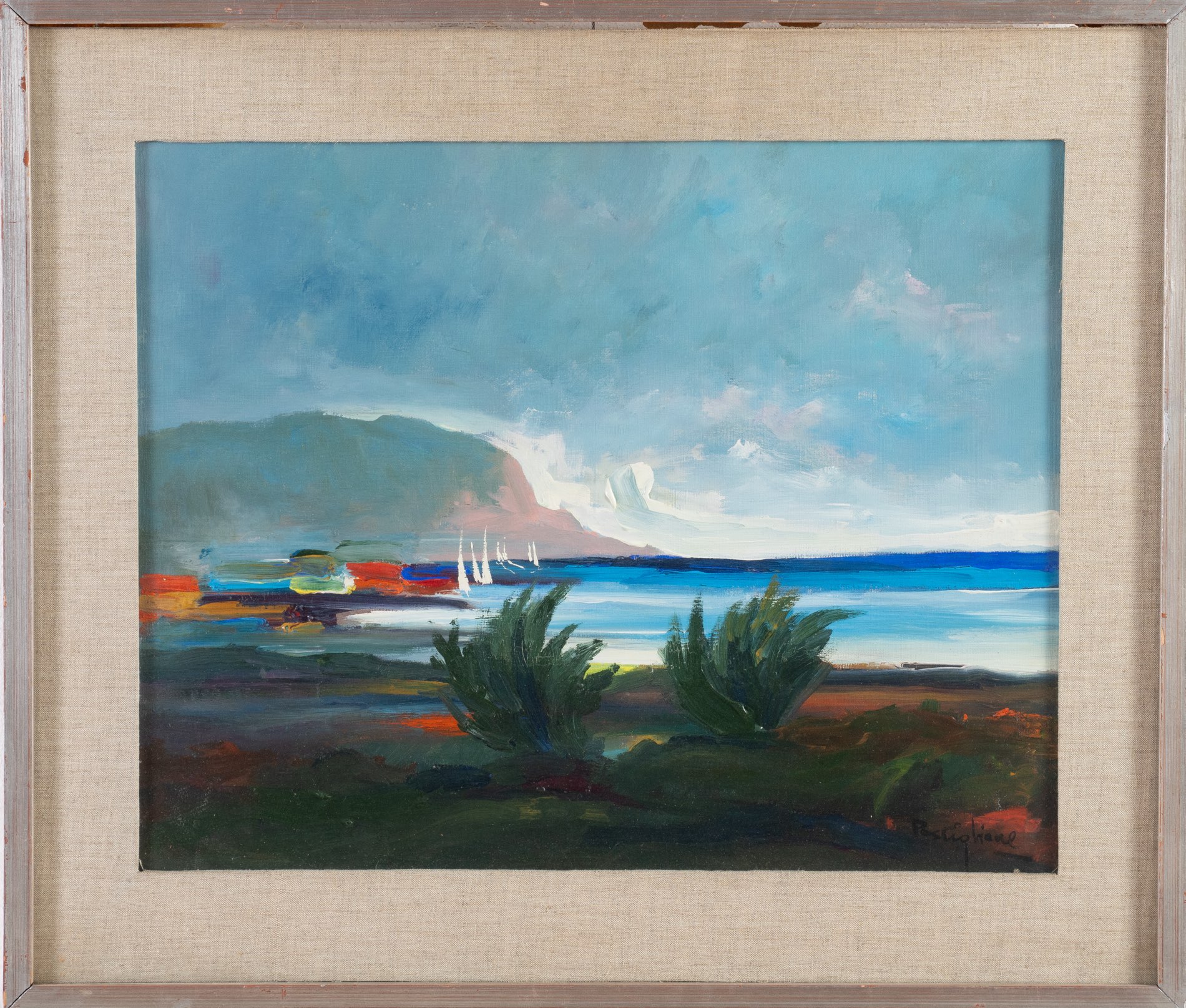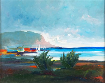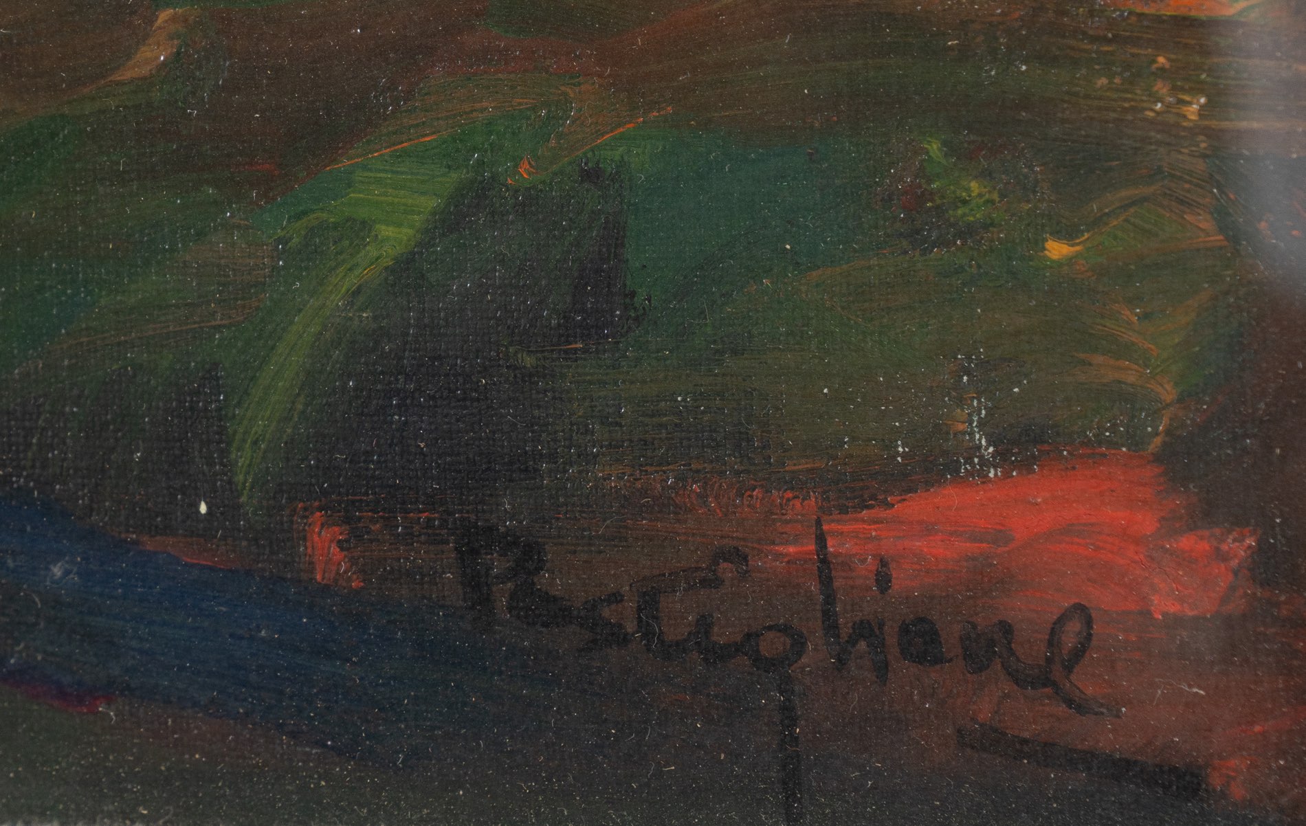 Vittorio Postiglione (XX secolo), “Paesaggio”. Olio su tela, firmato in basso a destra