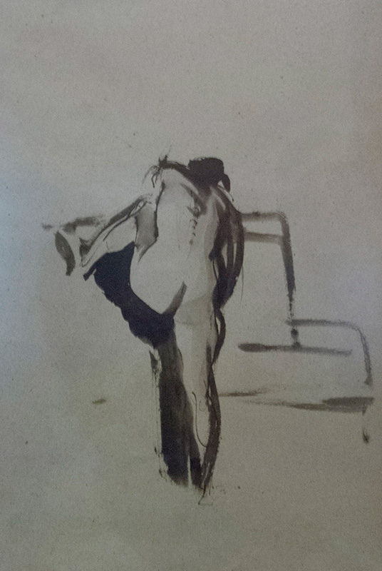 Annigoni Pietro Figura china su carta pesante con tagli regolari, cm. 61x37,5 firmata e siglata al retro