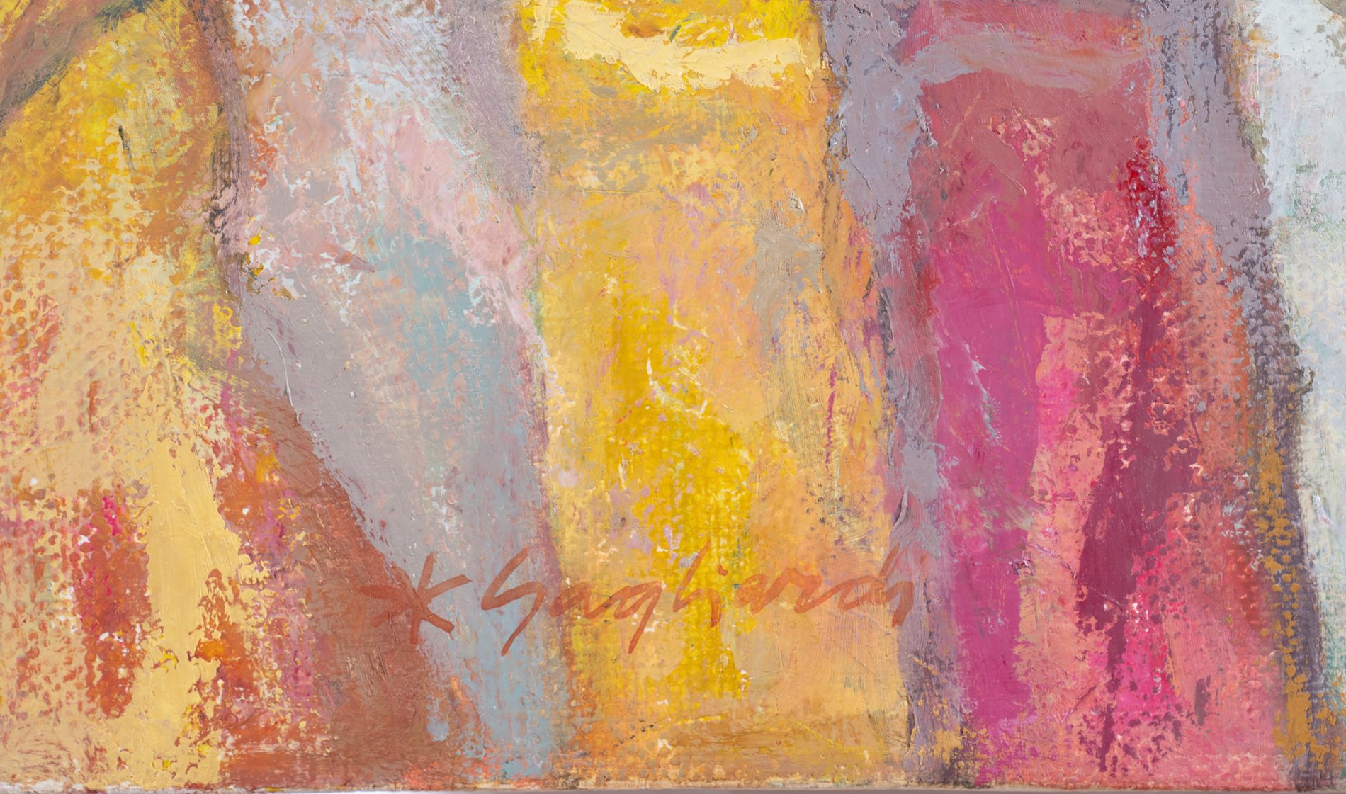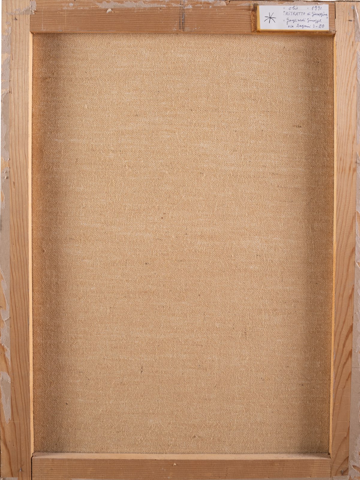 Giuseppe Gagliardi (Bologna 1902 - 2005), “Ritratto di Giuseppina”, 1991. Olio su tela, presenta in basso al centro simbolo grafico e firma dell'artista, reca al retro etichetta, H cm 85x64