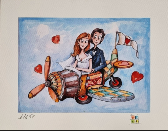 FENA Lecce 1958 "Senza titolo" Serigrafia su cartoncino pesante, ritoccata a mano, cm 24x18. Firmata a penna in basso a destra, tiratura a matita 1/150, a sinistra.
