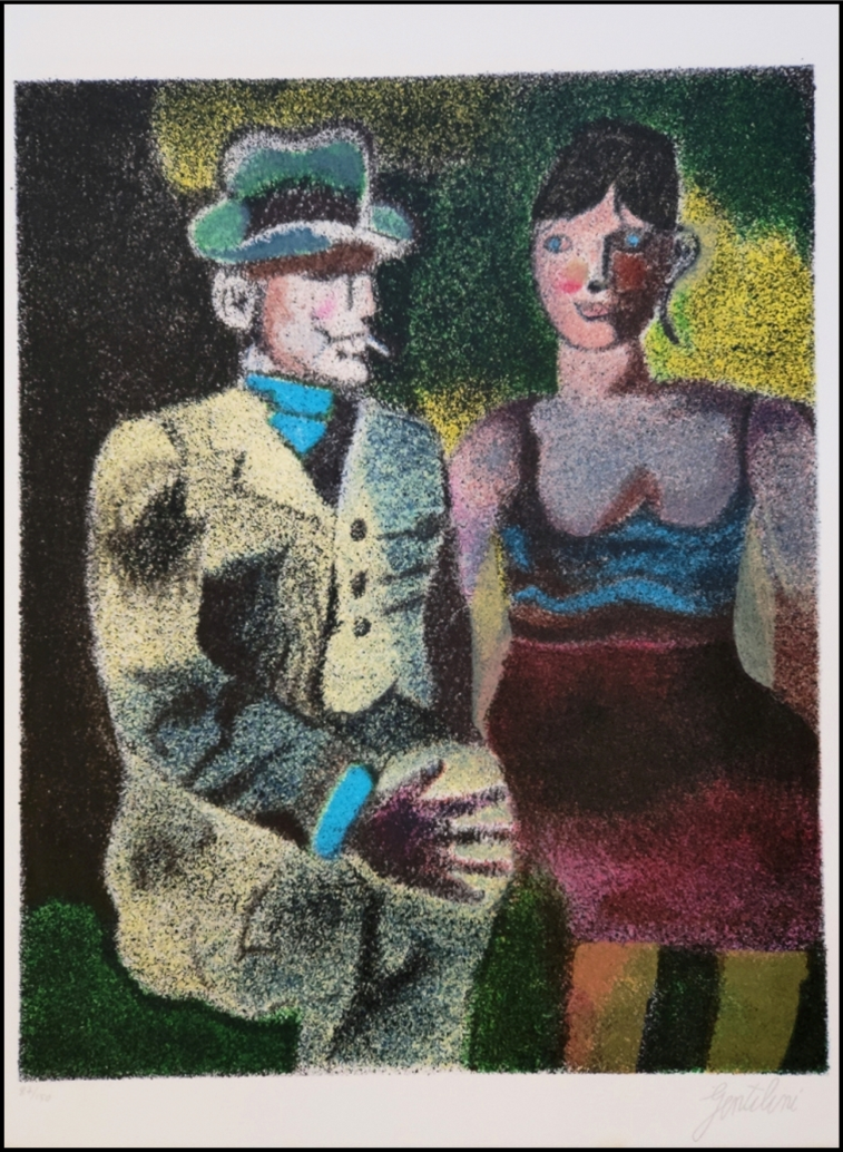 GENTILINI FRANCO Faenza 1909 - Roma 1981 "Senza titolo" Litografia su cartoncino cm 35x50. Firma e timbro a secco sul fronte in basso a destra, tiratura 87/150 a sinistra. Sul retro firma per autentica di Luciano Gentilini.