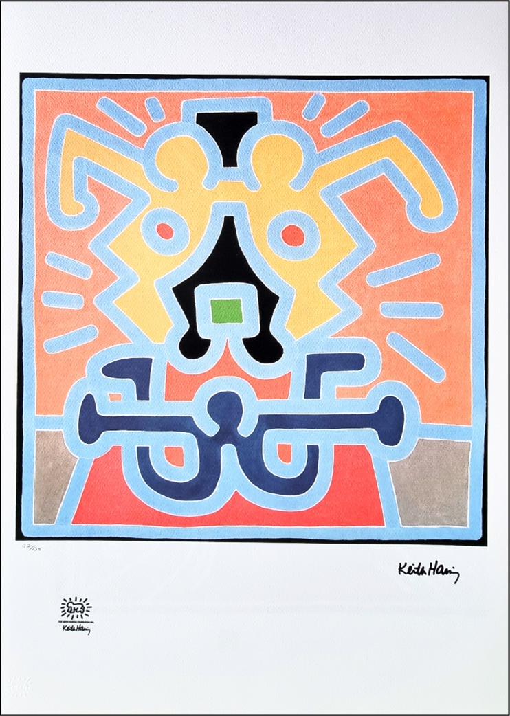 HARING KEITH Pennsylvania 1958 - New York 1990 "Senza titolo" Riproduzione litografica offset cm 50x70. Firma in stampa sul fronte in basso a destra, tiratura 127/150, timbro a secco e timbro in stampa a sinistra.