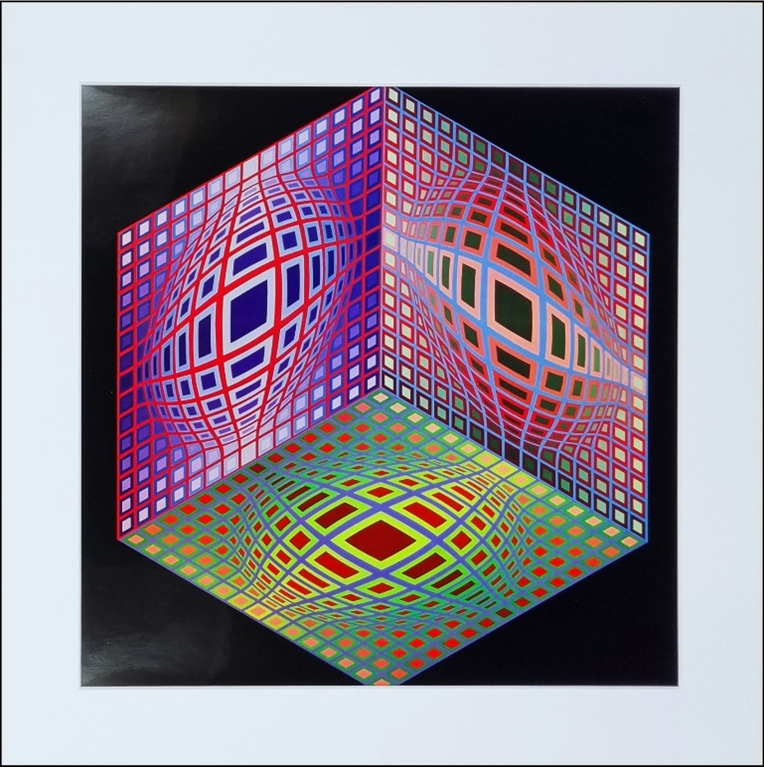 VASARELY VICTOR Ungheria 1906 - Parigi 1997 "Test 2" Stampa a schermo, multiplo cm 41x41 del 1971. Corredata di passepartout. Editions du Griffons, Suisse.