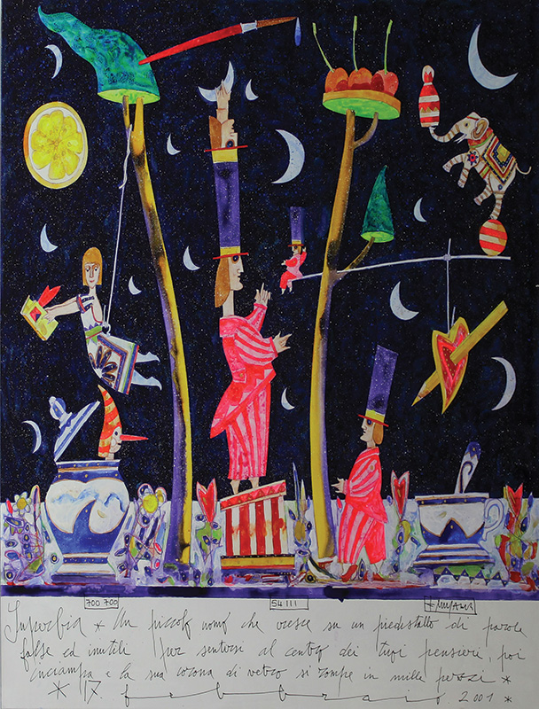 Musante Francesco Superbia tecnica mista su tavola, cm. 70x70 firmata in basso a destra e al retro dove è presente un disegno a pennarello, certificato di archiviazione dell'Archivio Opere Francesco Musante su fotografia