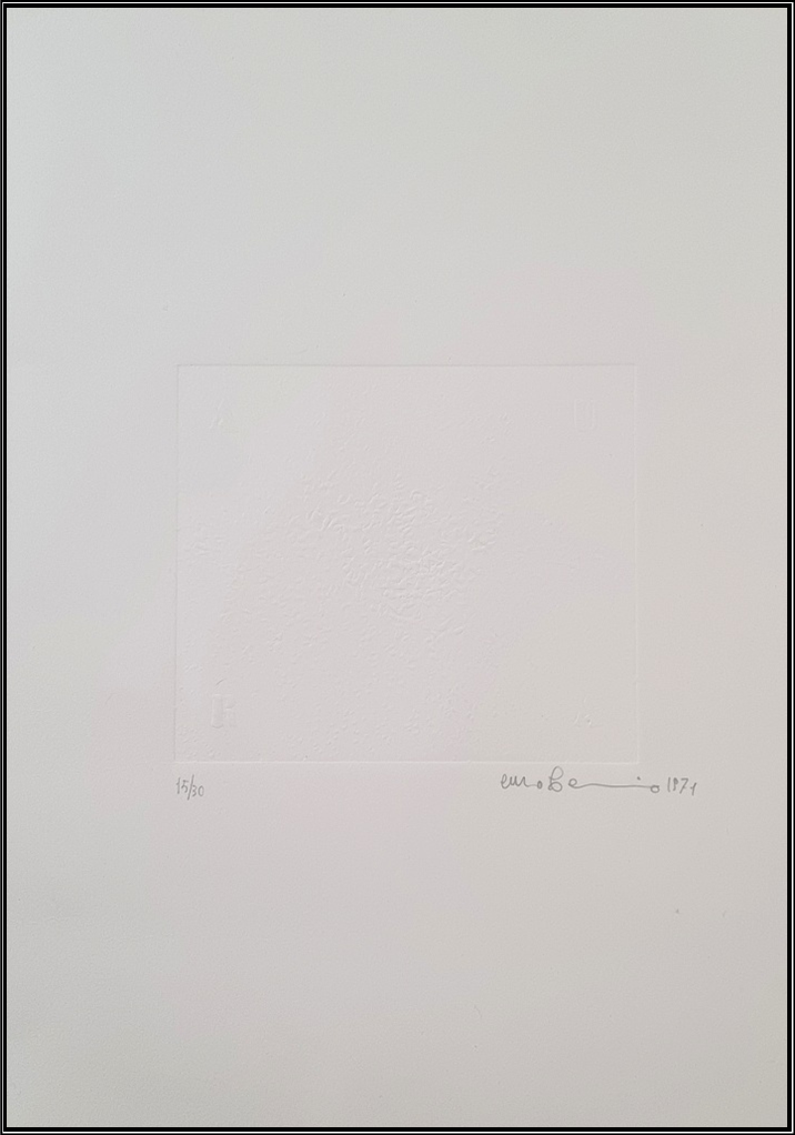 BERSEZIO ENZO Lesegno 1943 "Senza titolo" Incisione su carta battuta cm 17,7x20,3 su foglio cm 35,5x50, del 1971. Firmata e datata sul fronte in basso a destra, tiratura 15/30 a sinistra.