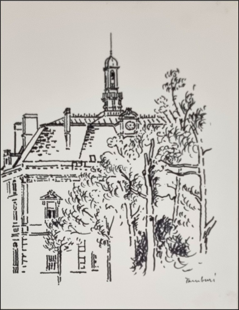 TAMBURI ORFEO Jesi 1910 - Parigi 1994 "Palazzo signorile" China su cartoncino cm 21x27, corredata di passepartout. Firmato sul fronte in basso a destra. Autentica su foto a cura del maestro.