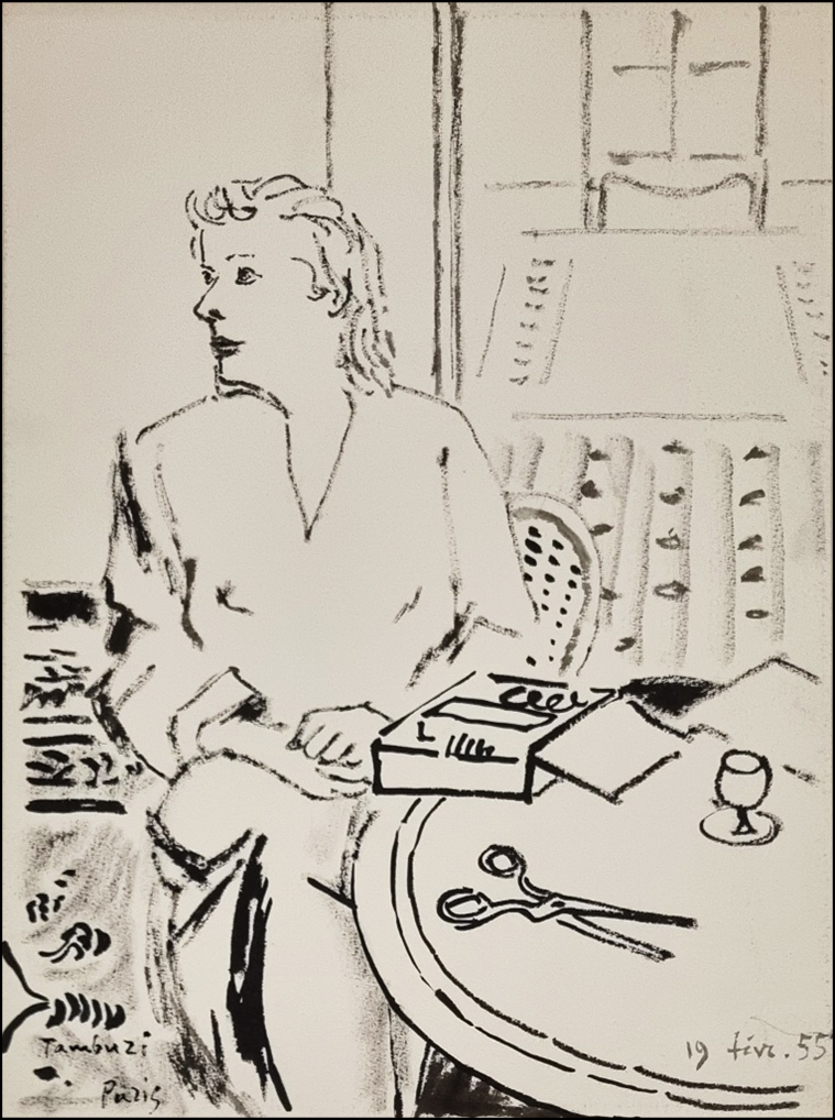 TAMBURI ORFEO Jesi 1910 - Parigi 1994 "Renèe" Tecnica mista su cartoncino cm 24x33 del 1955, corredata di passepartout. Firma e luogo sul fronte in basso a sinistra, data a destra. Autentica su foto a cura del maestro.