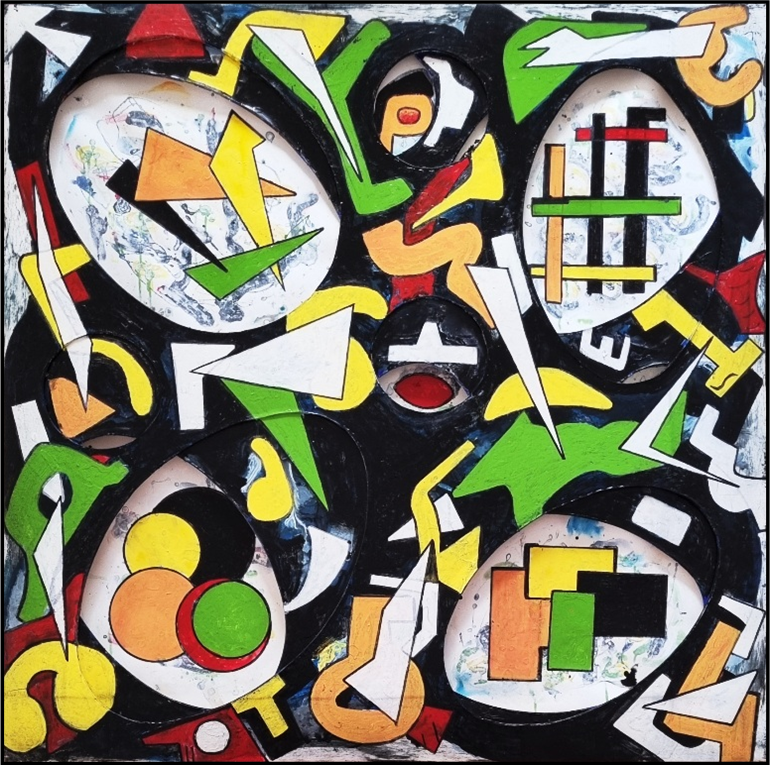 CROTTI DALILA Italia 1983 "May" Acrilici su pelle artificiale cm 100x100 del 2004. Sul retro firma, data, tecnica, misure e certificato d'archiviazione a cura dell'artista.