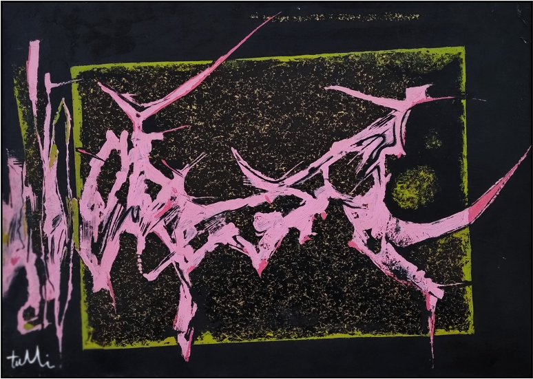 TULLI WLADIMIRO Macerata 1922 - 2003 "Per Vieira da Silva" Acrilici su tela applicata su tavola cm 70x50, del 1997. Firmata sul fronte in basso a sinistra. Sul retro intitolata e datata.